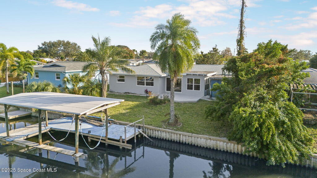 Fully renovated 3 bed, 2 bath Merritt Island canal-front home with over 1,900 sq ft . Enjoy 75 ft of direct canal frontage, a covered dock, and a boat lift.Inside, the home features two separate living areas, an updated galley kitchen, bathrooms, bedrooms, flooring, updated electric, and modern finishes throughout. Spacious bedrooms and an oversized garage add to the comfort. Also a shed for extra storage! Major updates include a new roof (2022) and AC (2018).Great location off N. Banana River Dr., just minutes from Cocoa Beach.