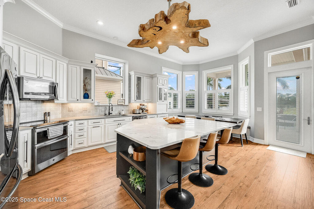 - Interior FeaturesBreakfast Bar, Breakfast Nook, Built-in Features, Ceiling Fan(s), Eat-in Kitchen, Entrance Foyer, Guest Suite, His and Hers Closets, In-Law Floorplan, Jack and Jill Bath, Kitchen Island, Open Floorplan, Pantry, Primary Bathroom -Tub with Separate Shower, Smart Thermostat, Split Bedrooms, Walk-In Closet(s) and Wet Bar