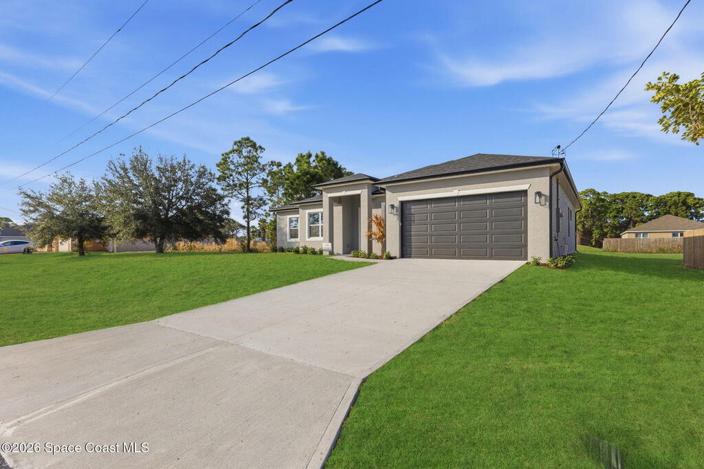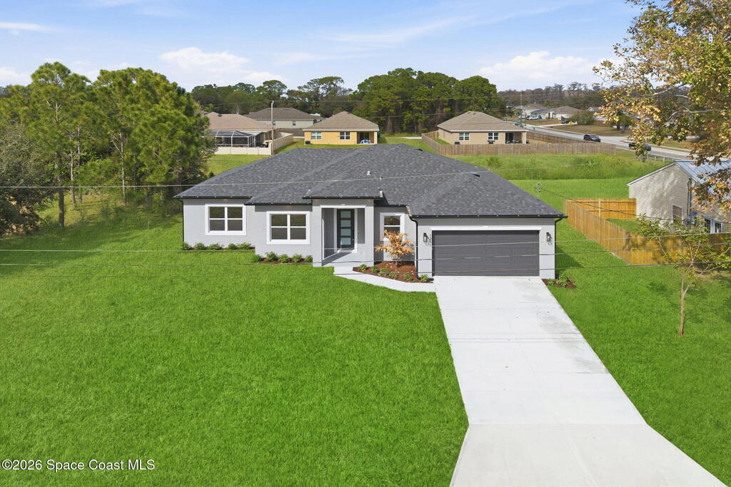 Experience modern luxury in this new build with completion date of 3/2026, showcasing premium finishes and thoughtful craftsmanship throughout. This home features stunning quartz countertops, 10-ft ceilings, and vaulted ceilings that enhance the bright, open layout. The kitchen is equipped with 42'' upper cabinets and quality details designed for both function and style.Interior upgrades include 8-ft interior doors, 8-ft garage doors, durable LVP flooring, and bathrooms finished with ceramic tile to the ceiling for a clean, elevated look. Enjoy added peace of mind with a front impact door and a whole-home water filtration system. Electric car charger included in garage.The home offers a full-service laundry room and a beautifully designed covered lanai, perfect for relaxing or entertaining year-round. This brand-new residence blends comfort, elegance, and modern living--move-in ready and built to impress.2-10 Warranty included.