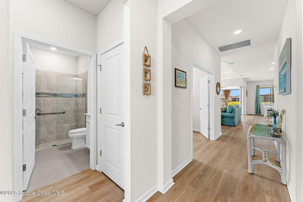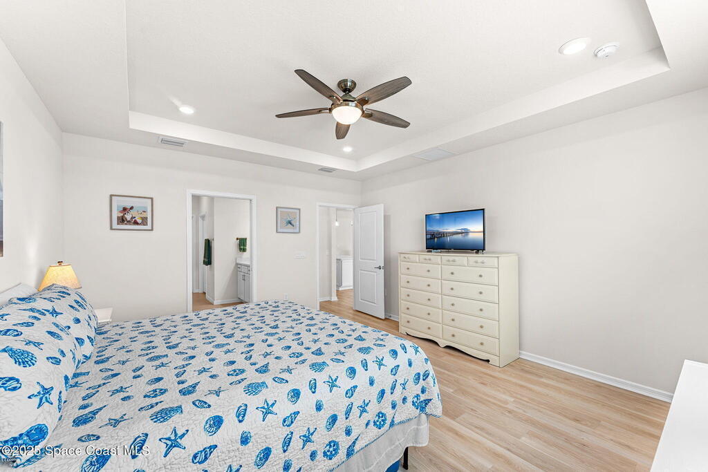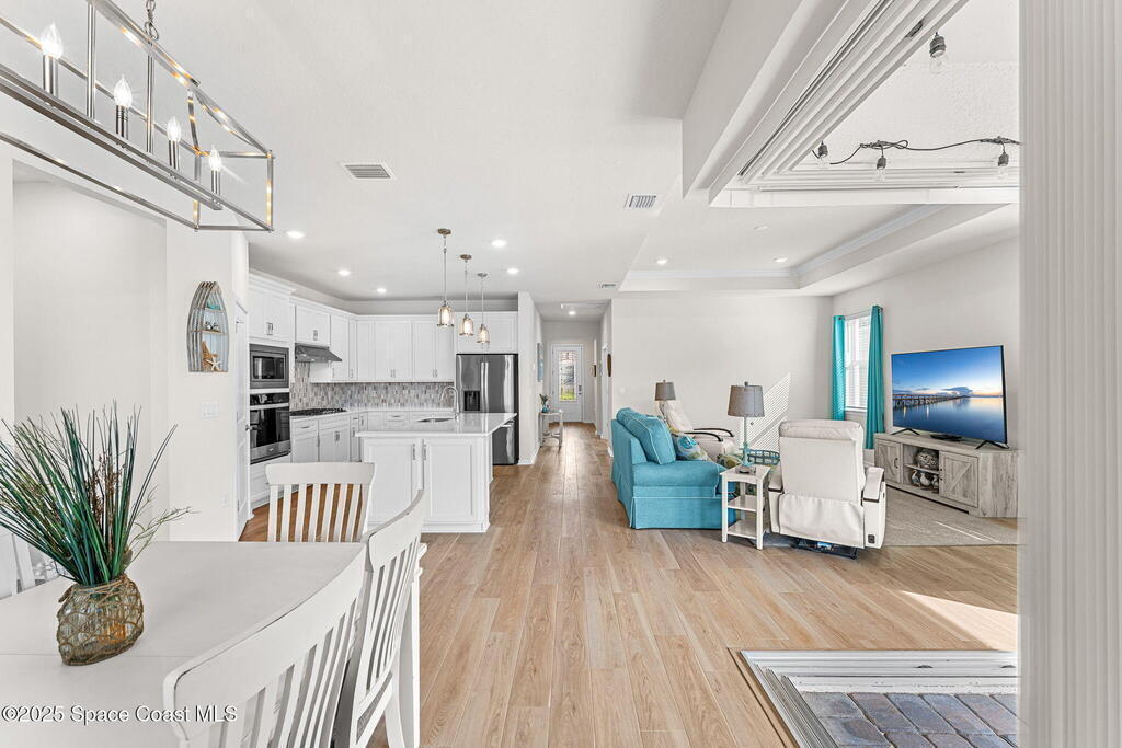 Welcome to lakefront living at its best in Del Webb Viera, one of Florida's premier 55+ active communities. This beautifully extended Mystique floor plan offers remarkable value--delivering three true bedrooms, three full baths, and a versatile flex room without having to move up to a more costly model to gain the extra space. It's the ideal blend of smart design and everyday luxury. Step inside to an open, airy layout where the family room, dining area, and kitchen flow seamlessly together. Expansive disappearing sliders extend the entire living experience outdoors, opening to an oversized screened lanai with a relaxing hot tub and sweeping lake views. Inside, you'll find updated flooring, gorgeous upgraded white cabinetry, and a crisp coastal aesthetic that feels both elevated and inviting. It's a perfect home for an active couple--with plenty of comfortable space for visiting family and friends. Living in Del Webb Viera means embracing a lifestyle rich with amenities and connection.