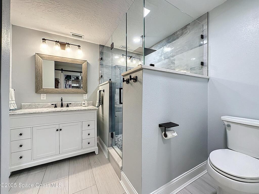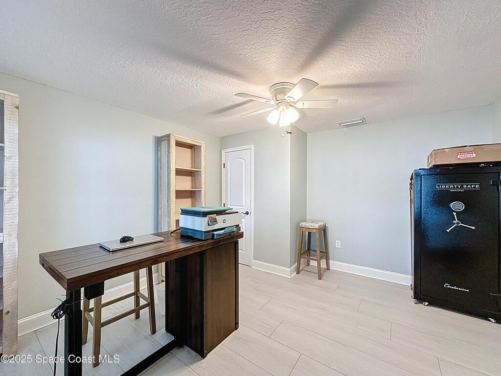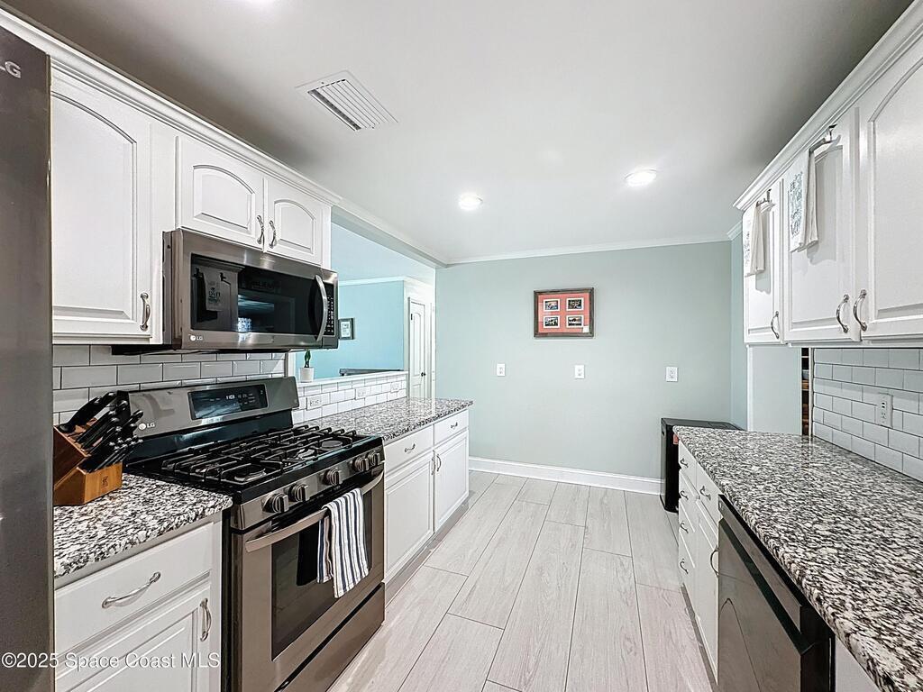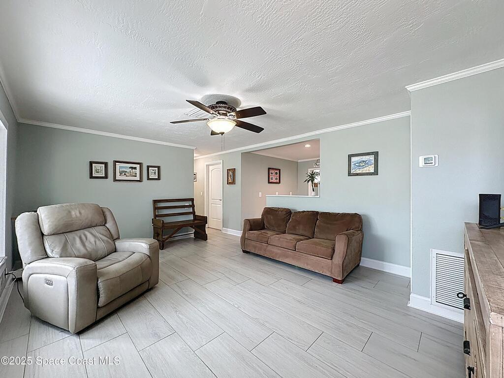 Welcome to 414 Oakridge Avenue, a beautifully remodeled 3-bedroom, 2-bath concrete-block home on city water and sewer with NO HOA in desirable Port St. John. This modern home offers a rare 3.69% VA assumable mortgage, an incredible opportunity for qualified buyers to secure a low rate and major monthly savings. Enjoy premium updates throughout, including 12x60 porcelain tile, new A/C, upgraded 200-amp electrical, modernized plumbing with NO cast iron, tankless water heater, renovated ductwork, and natural gas cooking. The redesigned layout features a spacious family room, dining area, and flex office/exercise room. The stunning kitchen boasts granite counters and soft-close cabinetry, while the primary suite offers a spa-like bath and walk-in closet. Outdoor living shines with a huge screened lanai and fully fenced yard with space for a boat or RV. Minutes to Publix, US-1, Space Center, beaches, and more. This exceptional home is the one you've been waiting you've been waiting for!