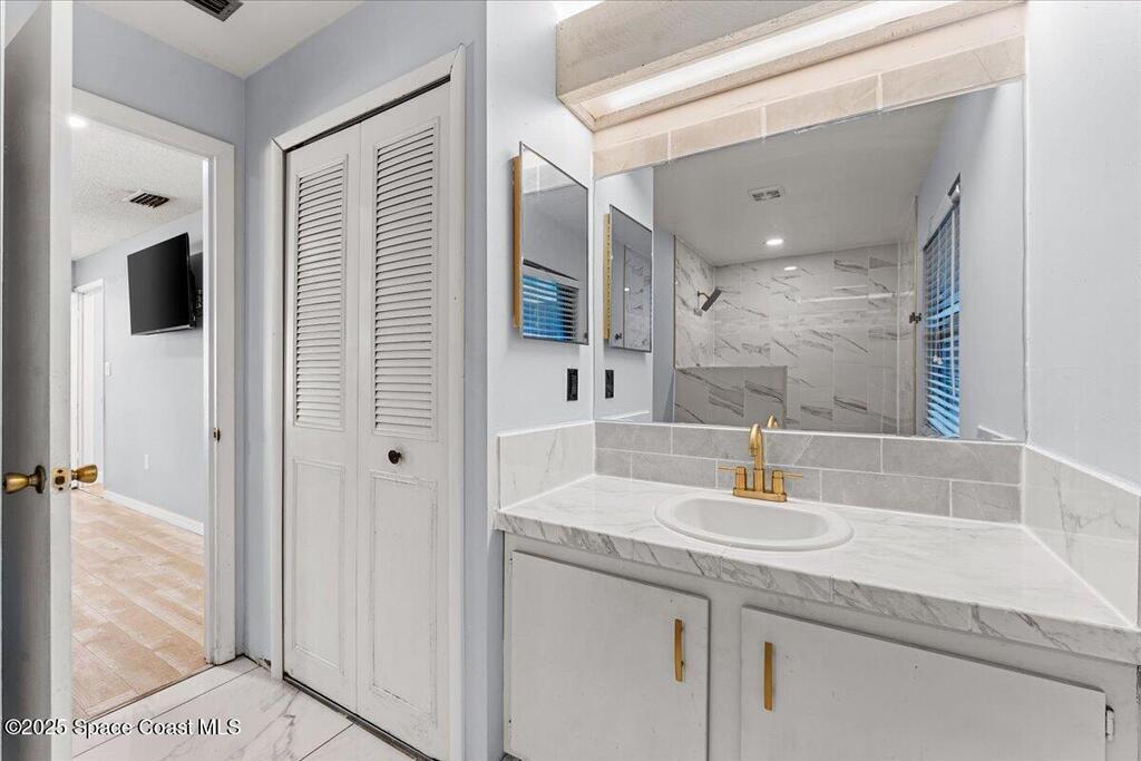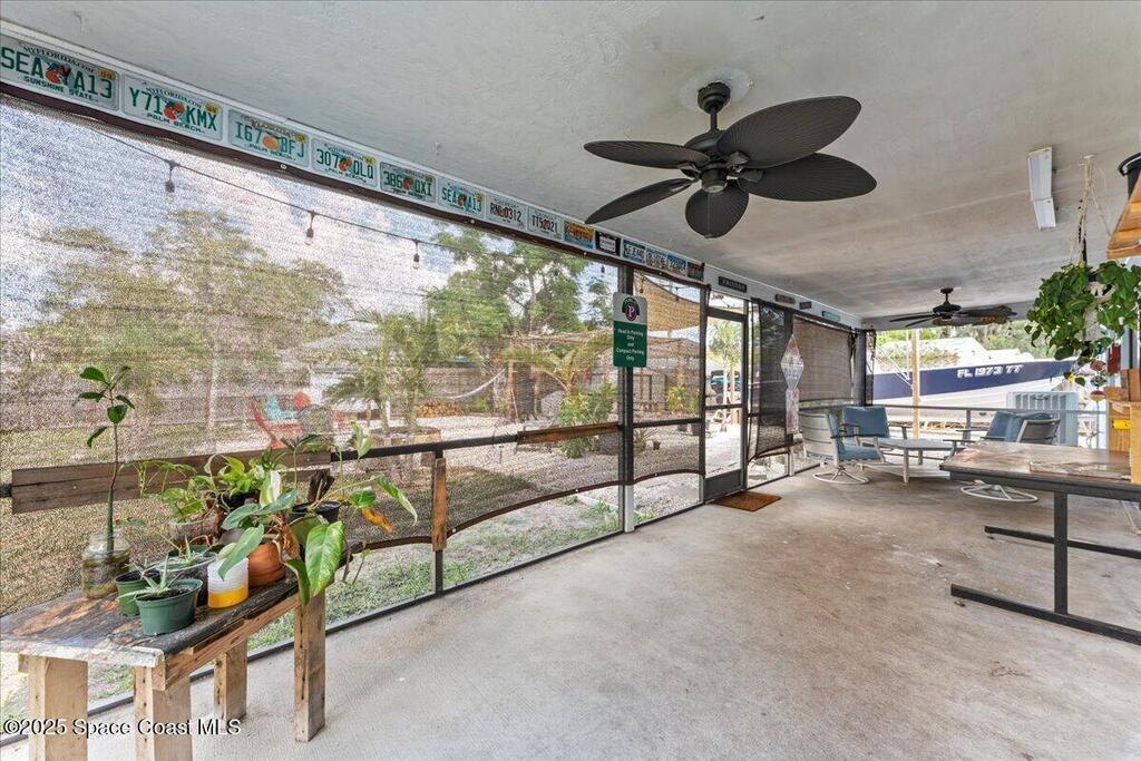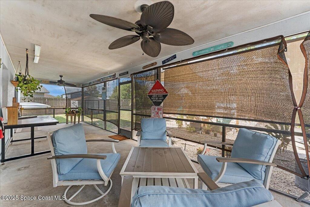 AMAZING AIRBNB OPPORTUNITY -- TROPICAL ESCAPE!Beautifully updated concrete-block home on an oversized lot with room for a pool. Backyard paradise features a custom pergola, rockscape, fire pit, grilling area, hammock, exotic flora, and a heated private outdoor shower. Secure BOAT/RV parking behind the fence. Inside, enjoy an open-concept split layout with cathedral ceilings, abundant natural light, new hurricane windows/sliders, new tile flooring, and modern flush-mount lighting. Stylish tile walk-in showers, newer roof, newer A/C, new water heater, smart oven/range, new fridge, and new garage door opener. AT&T fiber for ultra-fast streaming/work from home. Giant screened-in porch plus water softener. Located between US-1 & I-95 in a highly sought-after area with two neighborhood nature preserves offering walking/biking trails--plus friendly neighborhood peacocks!