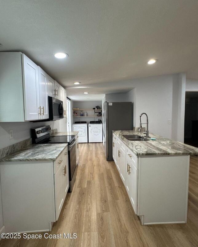 Beautiful mobile home with its own lot and no HOA in Cocoa.It features 3 bedrooms, 2 bathrooms, a fully equipped modern kitchen, a washer and dryer included, and an external storage area for extra storage. The spacious lot offers ideal space for gatherings, barbecues, and outdoor activities. An excellent option for those seeking comfort, privacy, and a home ready to enjoy. Just minutes from the beaches of Cocoa and Cape Canaveral, in a quiet area, surrounded by nature. Don't miss this opportunity to make it yours, enjoying a spacious lot and the comfort of your own home! Ready to move in!