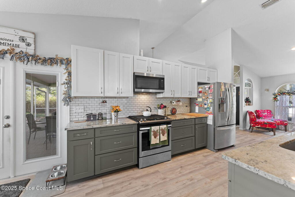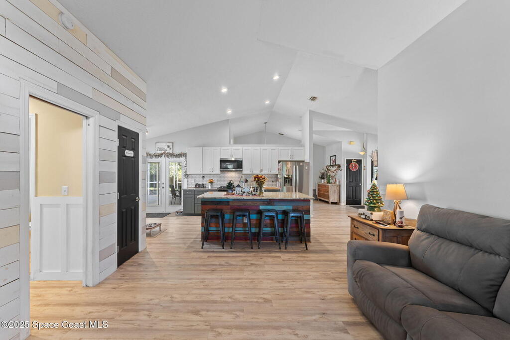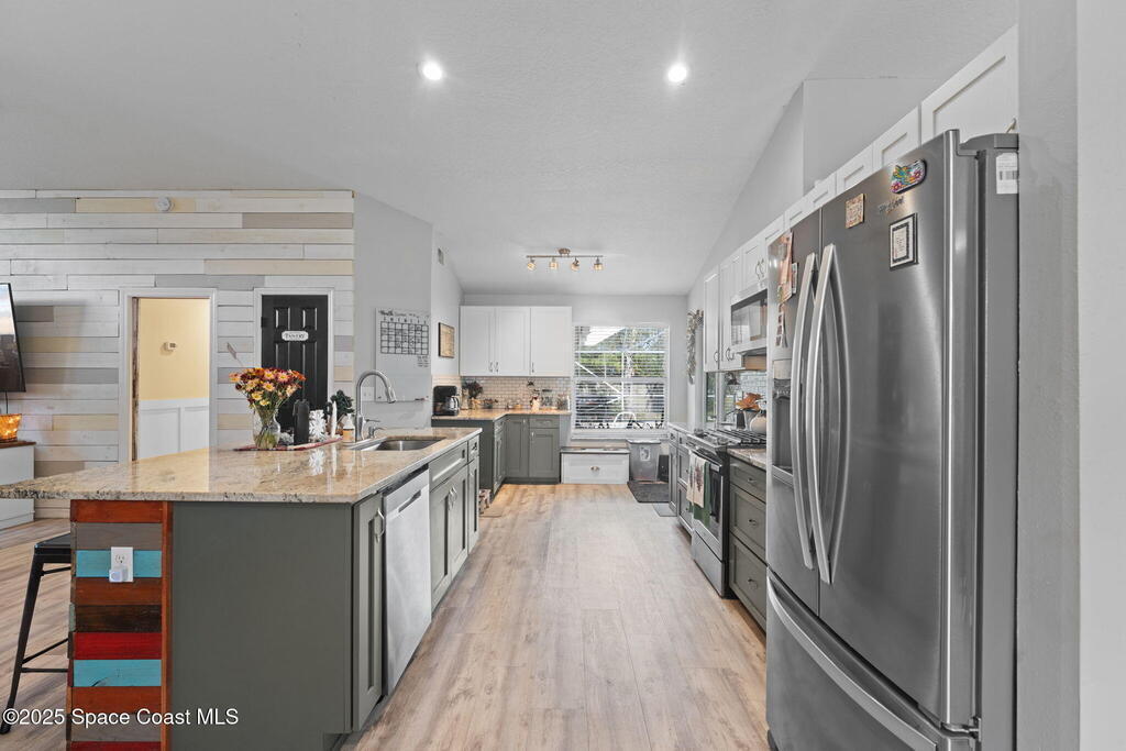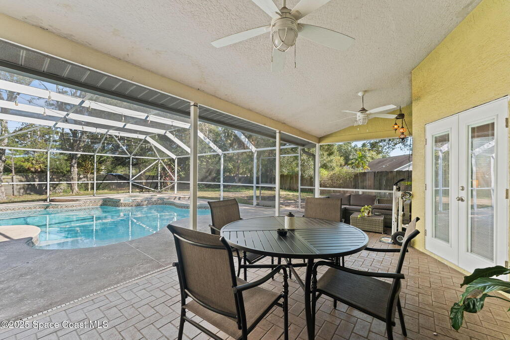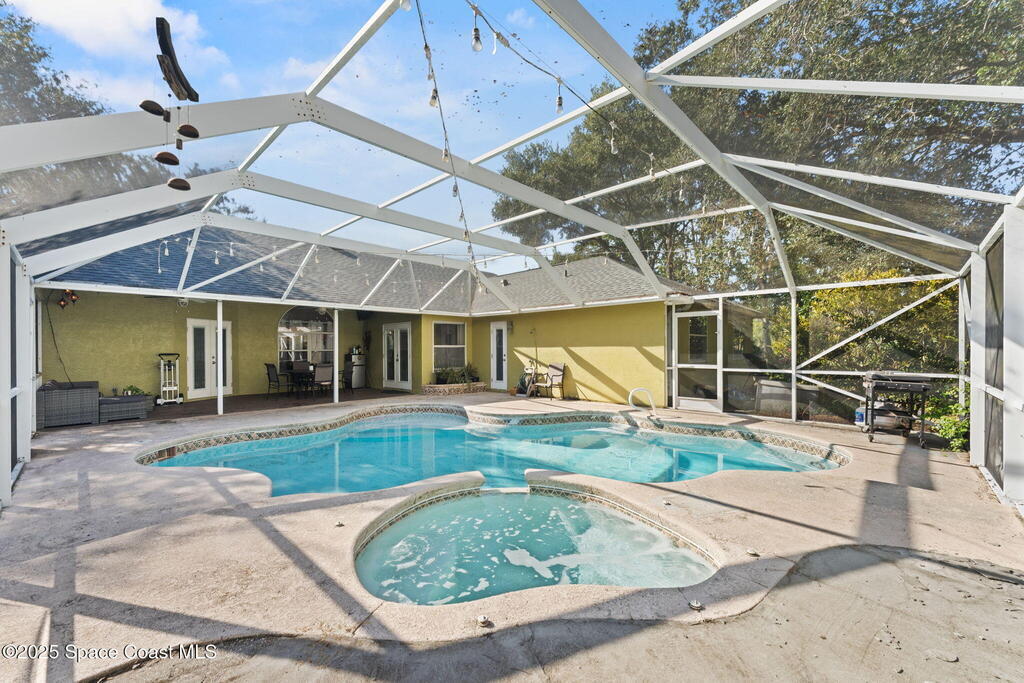 Welcome to a home that feels like a year-round getaway. This beautifully updated 4 bedroom, 2 1/2 bath pool home blends modern comfort with effortless Florida living. Perfectly positioned just minutes from the beaches and major amusement parks, and with the bonus of watching rocket launches from your own backyard, this is where convenience meets pure Sunshine State magic. Step inside and experience a space designed to impress. The stunning new chef's kitchen is the heart of the home, complete with a brand new 2025 refrigerator, 2023 dishwasher, and washer & dryer, all conveying with the sale. Luxury vinyl flooring installed in 2023 flows seamlessly throughout, creating a clean, modern aesthetic that's as durable as it is beautiful. This home has been thoughtfully updated for peace of mind, offering: a 2020 roof, new French doors installed in 2025, a resurfaced pool in 2022, and new supply lines added in 2023. Every improvement has been made with long term comfort and value in mind.