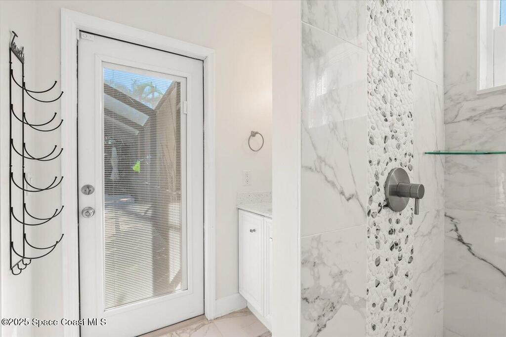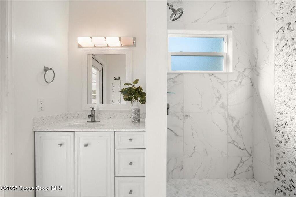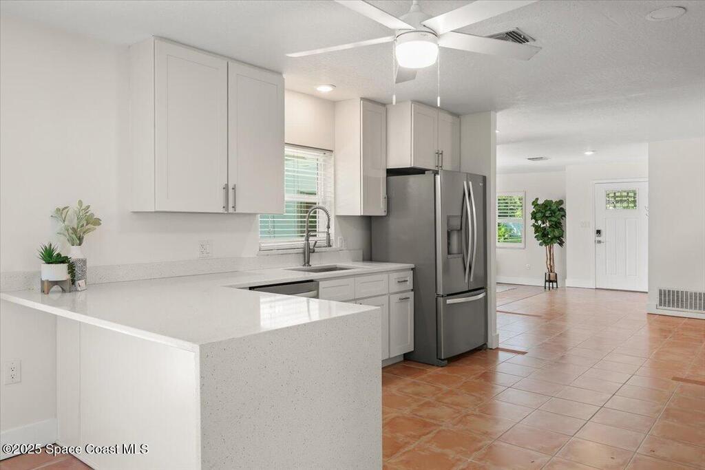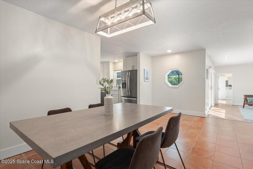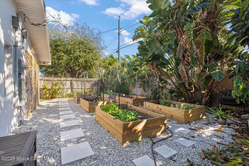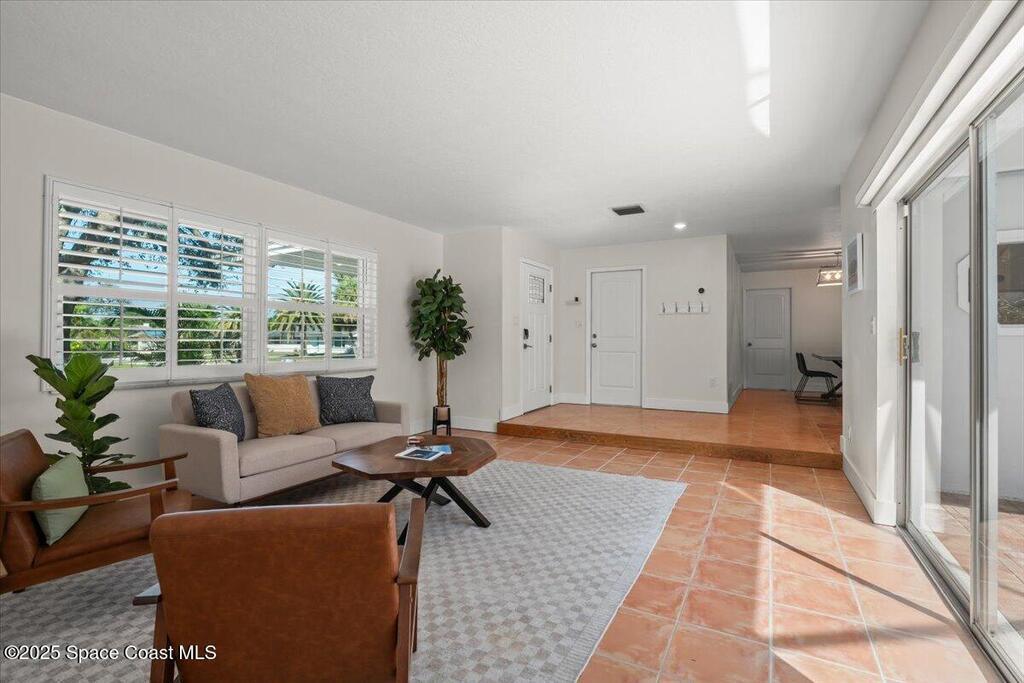 Step into a beautifully updated beachside home that delivers style, comfort, and the true Florida lifestyle. Terracotta flooring and a bright, open layout create a warm, inviting atmosphere the moment you enter. The remodeled kitchen features quartz countertops, contemporary cabinetry, and one year old stainless steel appliances. Both bathrooms showcase clean, modern finishes that complement the refreshed interior. The front and side windows are hurricane impact, giving the home added protection and peace of mind.The outdoor space is your private coastal retreat. Enjoy a screened saltwater pool, a relaxing hot tub, and a vibrant garden area ready for planting and future harvests. This is the perfect setting for peaceful mornings, weekend gatherings, and year round enjoyment.One of the most valuable features of this home is the powerful solar panel system with a dedicated backup battery. This system significantly reduces energy costs and ensures you will never be without power.