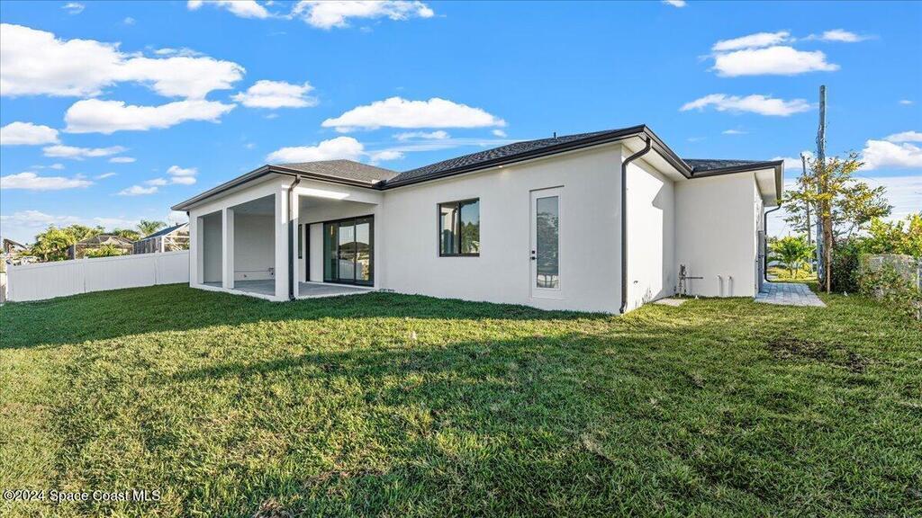 *BRAND NEW 2025 Construction.Custom Home on deep water canal.3 Bed, 2.5 Bath, 2 Car garage.Includes a 1 year home warranty from builder.Open split floor plan with 10ft ceilings throughout. Luxury vinyl plank flooring. Modern kitchen with large island, wet bar, quartz countertops and all new SS Appliances. Whole house hurricane impact PGT windows. Large walk in laundry room. Owners suite features split sinks, walk in shower and a huge walk in closet. Two bedrooms share a Jack and Jill bathroom with each room having their own sink area and privacy door. The rear porch is prepped for an outdoor kitchen and has a large covered patio perfect for entertaining with a view to the canal. Tongue and groove wood ceilings in back and front porches. Very Large Walkable attic space. Tankless water heater. Paver Driveway, Prewired for generator.Pool renderings are available.