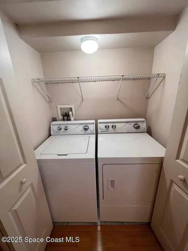 Enjoy island life in this updated 2/2 condo in quiet community with 2 pools that is centrally located. Corner unit, light and bright with, updated kitchen, granite countertops, wood cabinets and custom walk in pantry, screened-in porch with new sliders and windows leading from the living room and master, washer and dryer in-unit. Storage room. Complex has 2 pools and a car wash area. 1 assigned parking parking space for unit and multiple visitor spaces. The Harbor Woods community is located next door to the new large waterfront veterans park and has kayak access, fishing, nature walks, wildlife, playground, and more. Complex is nestled right behind the mall. 10 min to beach, 10 min to 528. Easy to navigate the island by using 'back roads' from here and avoid the 520 and the Courtenay traffic.