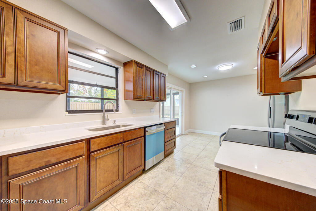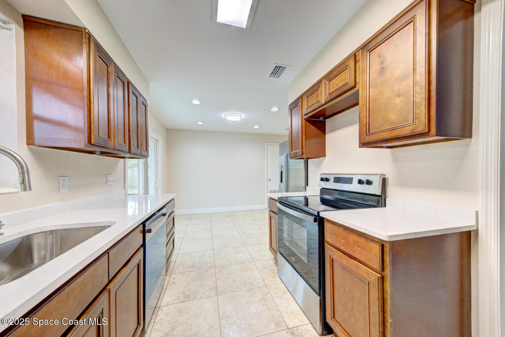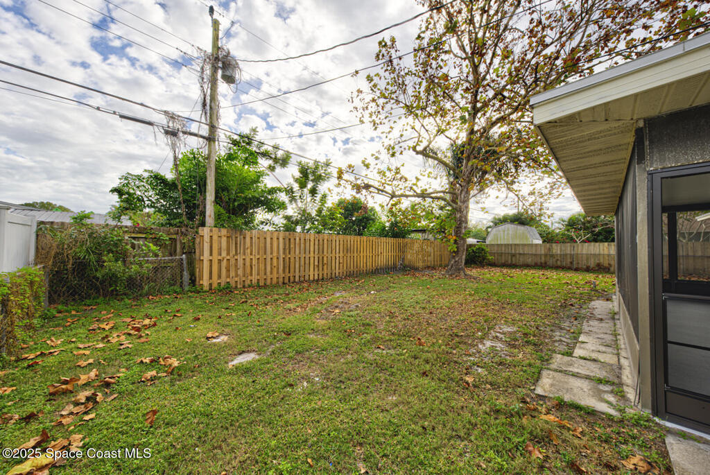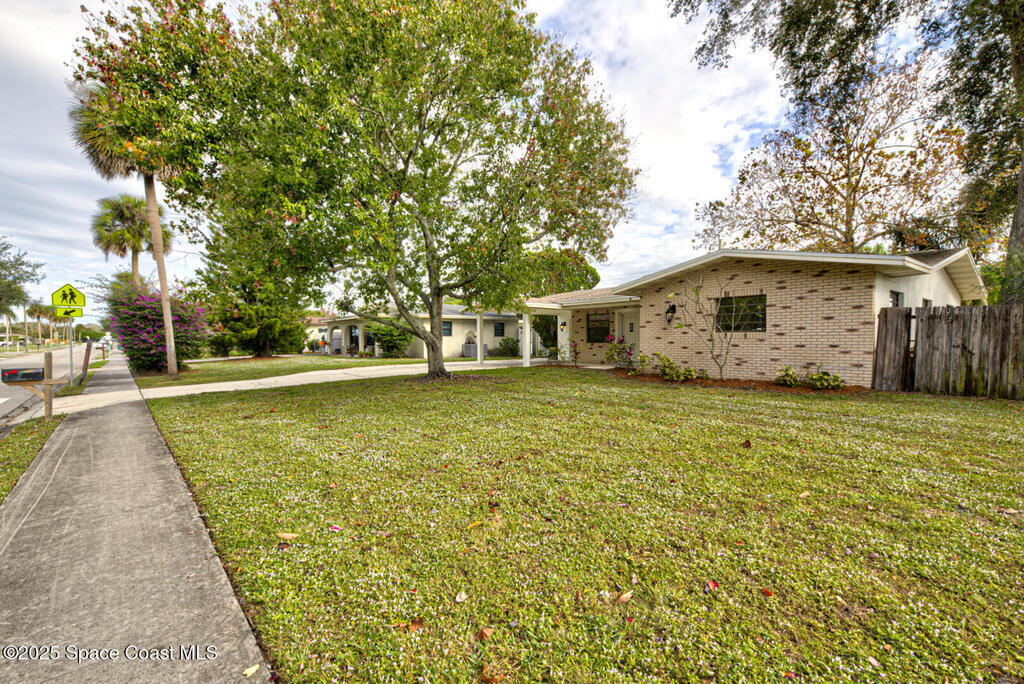 Perfect cottage for a Florida escape, this beautifully updated 4-bedroom, 2-bath home offers comfort, style, and convenience. Enjoy tile flooring in the main living areas with new carpet in the bedrooms, plus a remodeled kitchen featuring quartz countertops, a deep stainless steal sink, new appliances, and refreshed bathrooms. Extra roomy laundry room for additional storage. Fresh interior and exterior paint give the home a crisp, modern feel. The covered carport includes an additional parking area, and the large fully fenced backyard provides plenty of space for outdoor enjoyment and an over-sized screened in patio. Major upgrades include a 2021 roof, 2024 HVAC with new ductwork, PEX plumbing throughout, a gas water heater, hurricane shutters and updated lighting. Ideally located near Melbourne Airport, US-1, I-95, and Wickham Road, this home combines charm, quality, and excellent access to everything the area offers.