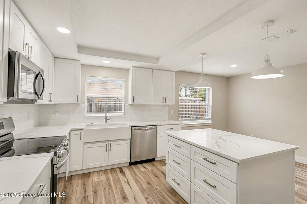 Beautifully renovated 4-bedroom home in unincorporated Indialantic, just a short walk to public beach access. Blending coastal charm with modern luxury, this move-in ready home features newer plumbing, roof, and electrical, along with elegant updates throughout. Inside, enjoy new flooring, fresh paint, quartz countertops, and a fully updated kitchen with farmhouse sink and new stainless appliances. Both bathrooms are stylish and refreshed. The open floorplan with new impact-rated sliding doors, opens to the expansive 51x10 covered and screened patio, creating a truly seamless indoor/outdoor living experience. From the fully fenced, nearly quarter acre yard, you'll embrace the Florida lifestyle while floating in the oversized, sparkling pool with a brand-new pavered deck. An oversized 2-car garage and ample additional parking complete this coastal retreat. You won't want to miss this one, so schedule your showing today!