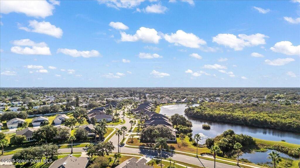 Nestled on a corner lot in prestigious Grand Isle, this idyllic abode provides picturesque estuary views, low-maintenance living and amenities galore. Built in the popular Grand Villa floor plan, this home offers generous living space and clean finishes like newer luxury vinyl flooring-NO CARPET. The open, bright kitchen includes a breakfast bar, pantry, and built-in desk space, and the primary bedroom ensuite features an attached den, office/sitting space, and a generous walk-in closet. The screened patio feels perfect for slow mornings or afternoon unwinding while taking in the water views. The community provides a resort-style pool and an elaborate clubhouse, housing social and wellness activities: dinners, yoga, pickleball, book clubs, cards, and more. Prefer a more relaxed pace? Enjoy stunning spaces to walk, and take in the natural surroundings. Conveniently located near to plenty of dining and entertainment options, about 15 minutes from the beach and under an hour to Orlando.