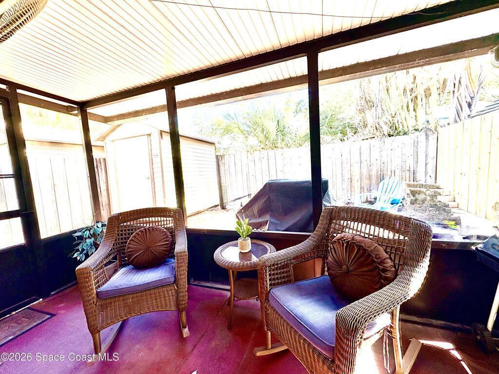Beautifully furnished, beach-inspired townhome just blocks from the ocean, offering exceptional value and coastal charm--with no HOA. This inviting two-story residence features a fully tiled first floor and a private, gated courtyard off the driveway, creating a welcoming outdoor entry perfect for a relaxed coastal living.The home also offers a screened-in back porch overlooking a private, fenced backyard with a storage shed--ideal for creating your own tropical oasis with plantings, grass, or pavers. The kitchen is equipped with newer appliances, and the unit includes a washer and dryer for everyday convenience.The downstairs bedroom is furnished as a den/TV room, providing flexible space for guests, work, or relaxation. Move-in ready and thoughtfully furnished, this coastal retreat is well suited as a full-time residence, second home, or investment opportunity in a prime beachside location. No monthly minimum, just Cape Canaveral requirement of one week! Great home or investment