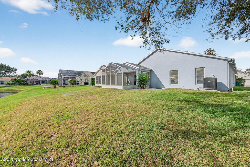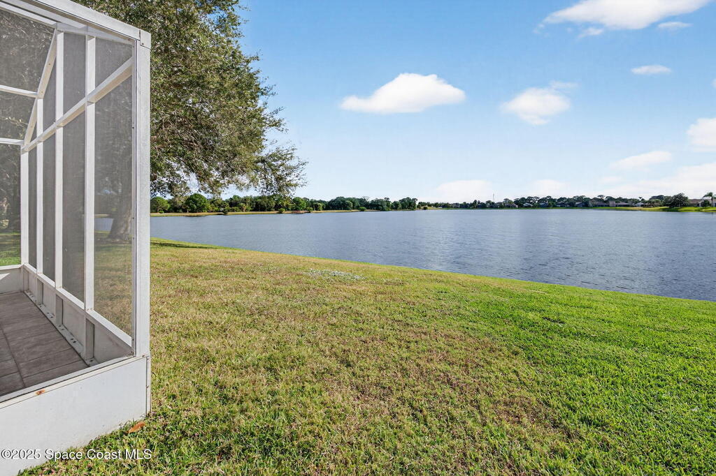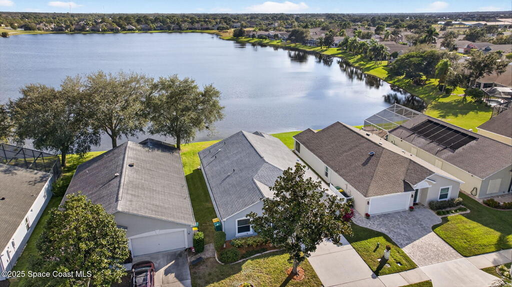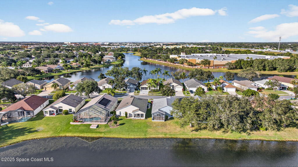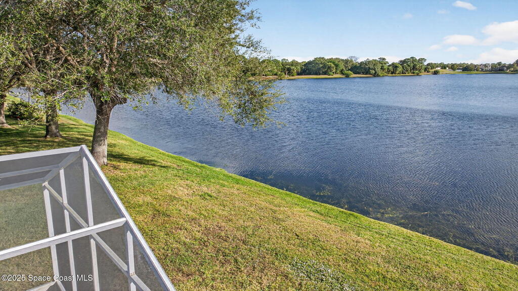 Beautifully maintained & UPDATED Viera home! Enjoy peaceful mornings & relaxing evenings on the expansive screened back porch with picturesque water views. This one is truly a must-see and will not disappoint. Featuring modern finishes & tile floors throughout, this home offers a bright, clean, and timeless look. The gorgeous kitchen features stainless steel appliances, sleek modern countertops, and a fantastic walk-in pantry, providing exceptional storage for the home chef. The home also includes multiple custom built-ins, offering style, organization, and elevated functionality throughout. Retreat to the primary suite, complete with a custom-designed master closet that maximizes space & convenience along with a custom shower. With 4 bedrooms ,2 baths, and a 2-car garage, this home offers comfort, flexibility, & room to grow. Freshly painted exterior, Roof 2017, and A/C 2021. Community Pool! Close to great schools, shopping and all that Viera has to offer!