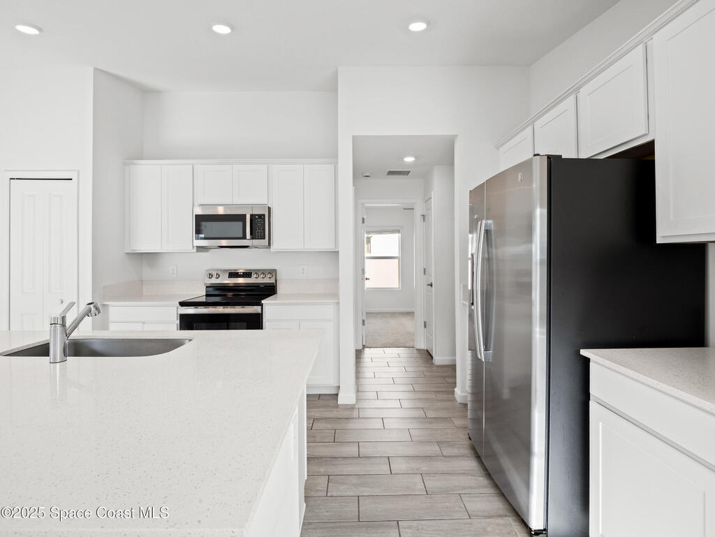 Beautiful 3BR/2BA single‑story home in the desirable Tillman Lakes community. This Lennar-built home features an open-concept layout connecting the kitchen, dining room, and Great Room--perfect for modern living. The kitchen offers White Shaker cabinets, an oversized quartz island, and ample storage. Wood plank tile flooring runs throughout all main living areas. The spacious Owner's Suite includes an oversized walk‑in closet and a luxurious walk‑in shower. Home is finished with 2'' faux wood blinds for added privacy. Enjoy the convenience of a single-story layout in a peaceful, well-maintained community.