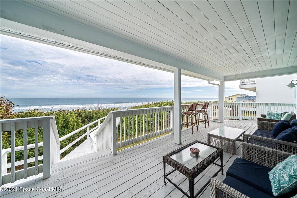 GREAT DEAL ALERT !! on this updated, direct oceanfront home along some of the most beautiful stretch of beaches on Florida's East Coast! Spectacular ocean views from kitchen, main living area, primary suite & 2nd bedroom, expansive covered deck and private beach crossover. Built on pilings on a large lot, nearly 20' above sea level w/ a very healthy dune creates the likely opportunity to add your own custom pool. A new AC (4/24), newer metal roof and impact rated windows/ doors (both 2020) and reverse osmosis water supply for the entire home all add significant value to this Oceanfront winner. Current owner has also had a successful vacation rental program with the property, so an easy plug and play investment opportunity to enjoy when you want and have guests pay for it, when you're elsewhere ! No HOA. This home was also featured on HGTV's Beach Hunters. Dare to live the dream!