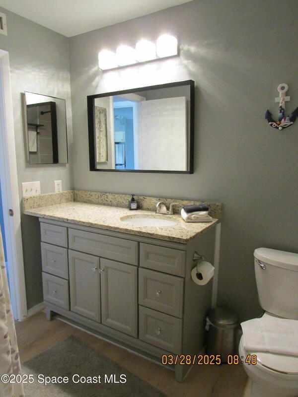 Occupied, showing by appointment only!! Beach resort style living! Short walks or riding to the ocean or river, restaurants, and shopping. 2 bedrooms 2 bathrooms on 2nd floor. Enjoy breeze on the covered balcony overlooking pond in the back. Granite countertop in kitchen with updated both bathrooms, luxury vinyl flooring. Community offers heated pool, hot tub, cabana, & fitness center. An ideal location for your primary residence, vacation getaways, investment home for both long and short terms such as Airbnb. Furniture is not part of sale and is available for sale. The property is also listed for long-term and short-term rental.
