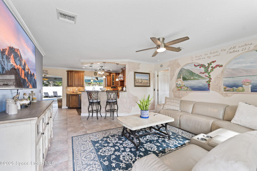 Do not over look the 3 bedroom 2 full bathroom Melbourne Beach gem offering an expansive outdoor living space including a huge 9' deep inground pool, large covered patio, paver fire pit and a outdoor beach shower. There is also a detached car enthusiast's 2 car garage complete with air-conditioning, a commercial electric hydraulic 2 post car lift, oversized commercial roll-up door and a storage loft connected to the house with a breezeway to keep you dry. Membership to the voluntary HOA offers a gated beach access to Melbourne Beach's pristine ocean and the Indian River access for fishing and sunsets. The roof was replaced in 2020 and this home has been re-insulated with spray foam insulation in the attic and most windows are insulated impact glass for a very energy efficient home. A full home water softener and reverse osmosis conveys as well.