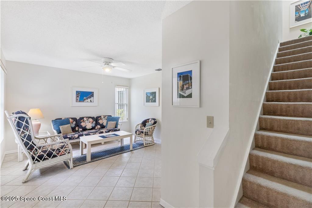 Rare corner unit, Bright, Spacious 3 Bedroom 2.5 Bath, Model Suite. Beautiful natural lighting fills this two-story townhome boasting tall cathedral ceilings with skylights and Beautiful Tropical views. Walk-in closets throughout all bedrooms. Porcelain tile floors, brand new carpet, 2022 water heater and newly painted first floor. Original owners, very well maintained, clean nonsmoking environment. Closest to Private Beach access, along with many other amenities such as Tennis, Pickleball, Swimming, Fitness room, Billiards, Ping-Pong, Grand piano and many social activities.