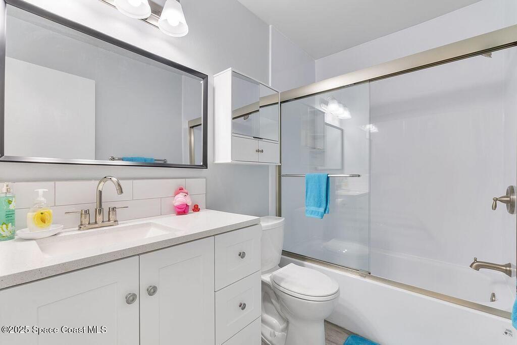 Welcome to an exquisitely remodeled home where no detail was overlooked. Fully renovated and permitted, this property offers exceptional peace of mind with the owner's investment in high quality improvements, no expense was spared. Inside enjoy luxury vinyl plank flooring 2025, impact windows 2023, new appliances and kitchen with subway tile backsplash 2024, granite, custom cabinets, stack-able laundry in the unit, breakfast bar, AC 2019, water heater 2023. The bathrooms have been thoughtfully upgraded with an insert, so no grout and a sleek look with low maintenance. Outside the freshly painted exterior is complemented by a courtyard with custom turf that is pet proof. The roof is 4 years old, leaf gutter guards and underground drainage=no puddles. Safety and comfort are paramount, 24/7 owned system and security lighting. HOA offers pool, tennis courts, pickle ball and clubhouse, resort style living with the confidence of extensive, thoughtful renovations. Cash only please.
