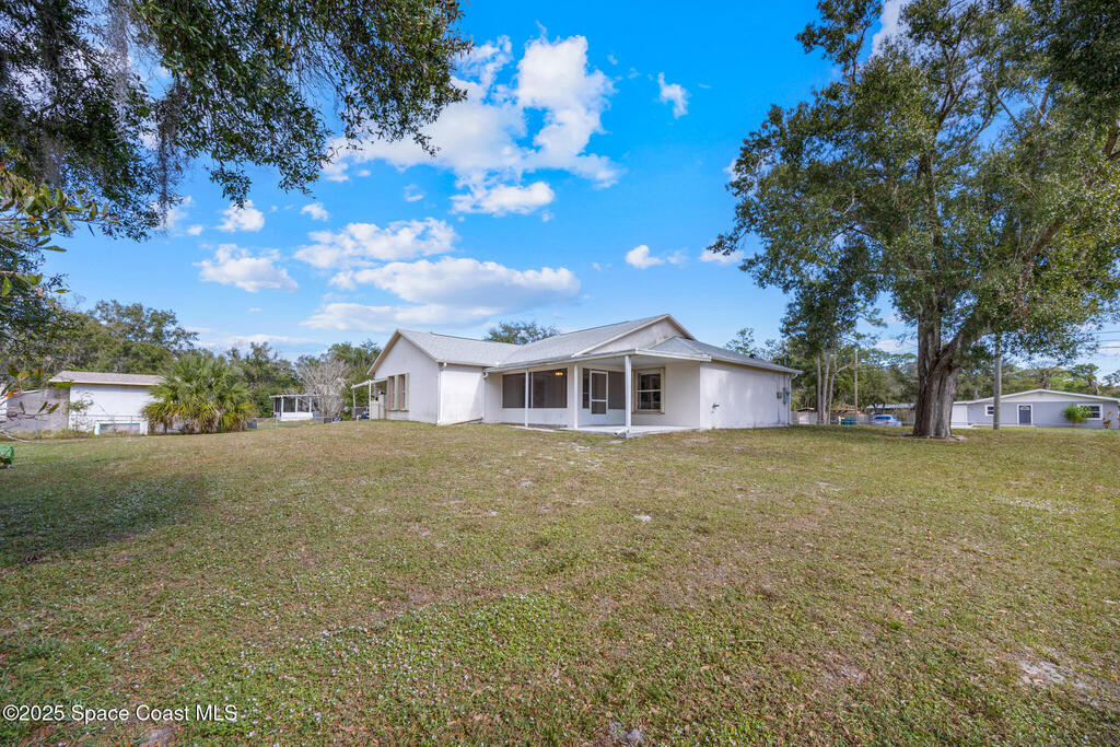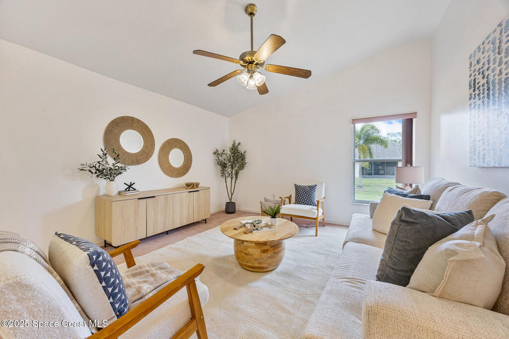 High and dry on 0.4 acre lot in the sought after June Park neighborhood near W. Melbourne. This 1998 Cinder Block Construction with space, flexibility provides long term value. No HOA! wide lots, and room for RVs, boats, chickens, garden etc. Roof: 2023; Water Htr: 2025; HVAC: 2018.The interior is clean and fully functional! Only cosmetic updates are needed! With new carpets, paint and counters this house WILL be a new home! All major home systems are in good working order so you can focus on updating finishes rather than major repairs.1,775 square feet & a split floor plan with 3 bedrooms, and 2 full bathrooms. Vaulted ceilings in all living areas creates a very open and bright feel. The primary suite includes a walk in shower, and the guest bathroom offers a tub.Completely fenced yard with two covered patios (one screened) AND ample backyard space with septic in front allowing room for a pool!