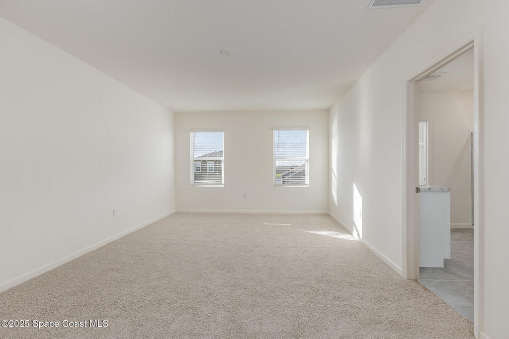 Discover the perfect blend of space and style in the sought-after two-story Hayden floorplan in Palm Bay Florida. This stunning 5-bedroom, 3-bathroom home offers 2,601 sq. ft. of versatile living space and a two-car garage. Luxury vinyl plank flooring in the main living and wet areas adds modern elegance and easy maintenance. Enter through the foyer into a flexible room, ideal for work or play. The kitchen seamlessly connects to the living and dining areas and features spacious cabinetry, quartz countertops, an oversized single-bowl undermount sink, a center island, sleek stainless-steel appliances, and a walk-in pantry. The first floor also includes one bedroom for privacy. Upstairs, the primary bedroom offers a tranquil retreat with an en suite bathroom. Three more bedrooms surround a second living area, plus a full bathroom and laundry room. The Hayden also features durable concrete block construction and smart home technology for remote control of your home.