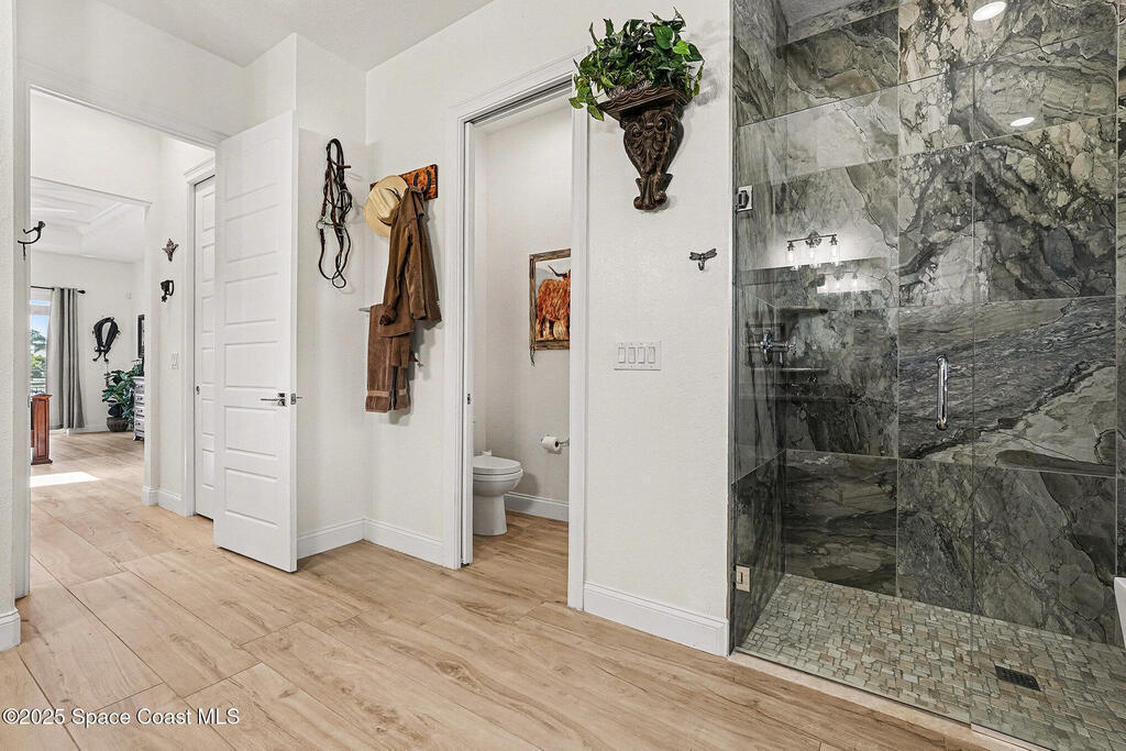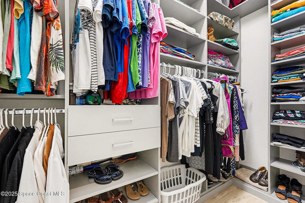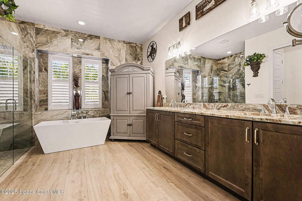 - Interior FeaturesBreakfast Bar, Breakfast Nook, Guest Suite, His and Hers Closets, Kitchen Island, Open Floorplan, Pantry, Primary Bathroom -Tub with Separate Shower, Primary Downstairs, Split Bedrooms and Walk-In Closet(s)