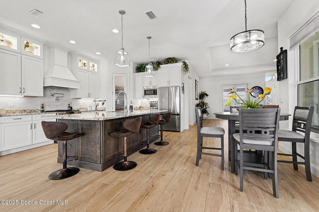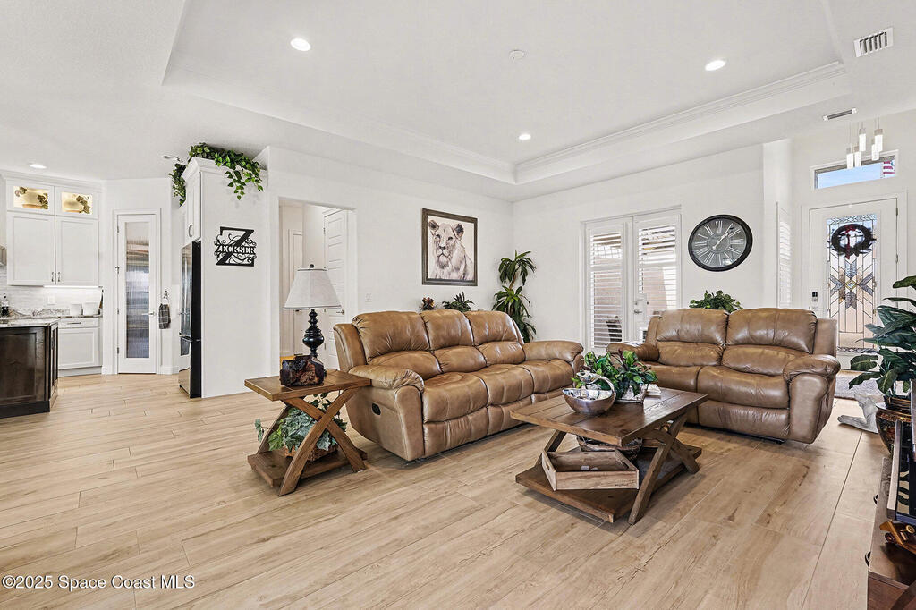Discover Your Custom Florida Dream Home in Laguna Village!Enjoy Florida living outdoors with a summer kitchen, fenced yard, and PANORAMIC screened in sunset tranquil lake views. Centrally located near FIT, shopping, and dining. Welcome to the stunning Pacifica Model in the highly sought-after, gated Laguna Village community in Melbourne, FL. Built by one of Brevard County's award-winning builders, this home perfectly blends luxury, comfort, and functionality.Step inside to a bright, open-concept layout featuring soaring 10-foot ceilings, elegant finishes, and abundant natural light--ideal for both everyday living and entertaining. The gourmet kitchen is a chef's delight with stainless steel appliances, an oversized island, and ample cabinetry. The versatile 3-way split floor plan offers privacy and flexibility, including space ideal for an in-law suite. The primary suite is a true retreat with a spacious bedroom, walk-in closet, and luxurious ensuite bath.