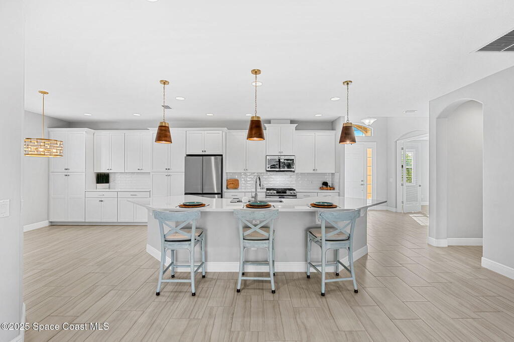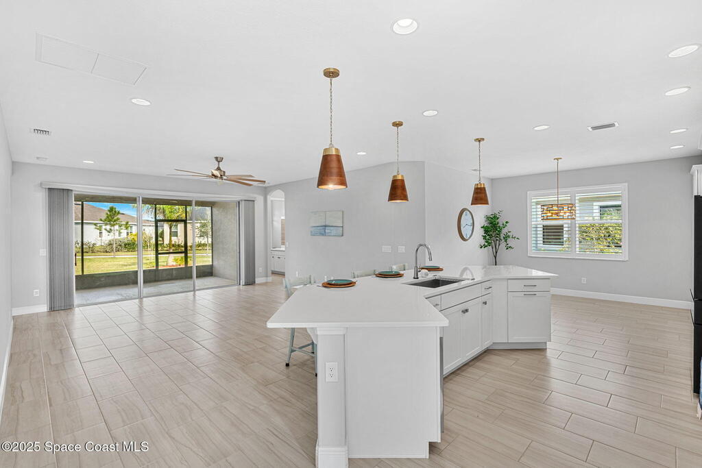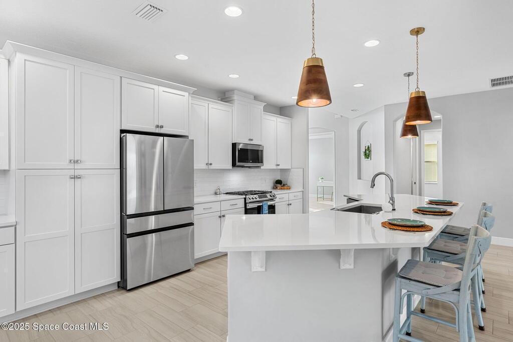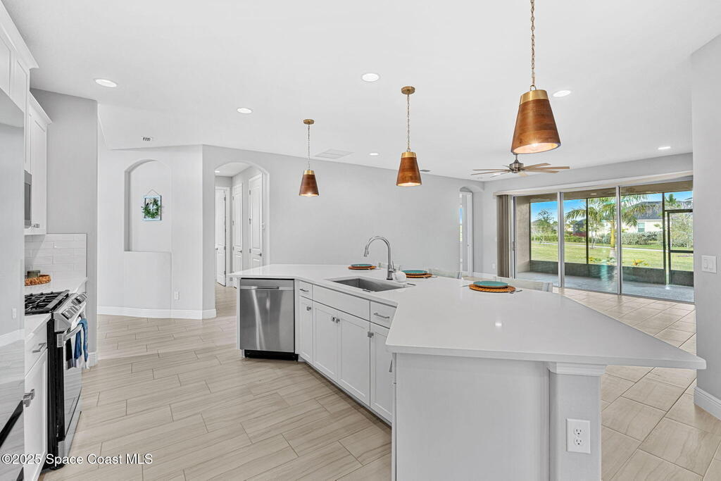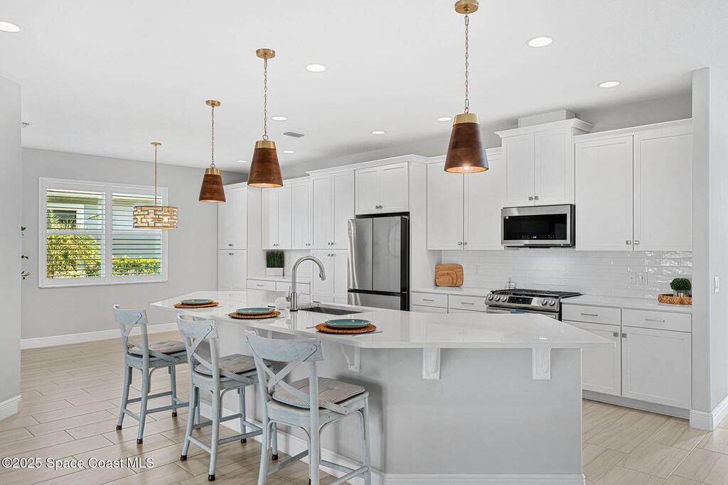 Welcome home to a stunning single-family residence located in the highly desirable community of Sendero Cove in Viera West. Built in 2022 and featuring the Madison floor plan, this modern home offers 2,283 square feet of thoughtfully designed living space with 4 bedrooms and 2.5 bathrooms.Upon entry, you are welcomed by a bright, open-concept layout that seamlessly connects the living, dining, and kitchen areas. The chef-inspired kitchen serves as the centerpiece of the home, featuring quartz countertops, stainless steel appliances, upgraded cabinetry with pull-out drawers, and a gas stove for precision cooking.Designed with comfort, safety, and efficiency in mind, the home includes impact windows at the front, hurricane shutters throughout, and a tankless gas water heater, providing peace of mind and energy efficiency year-round.Step outside to enjoy Florida living at its finest on the screened-in rear lanai, or take full advantage of