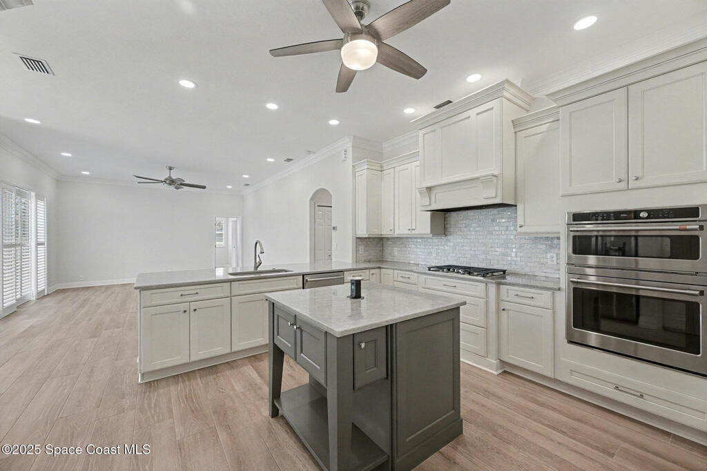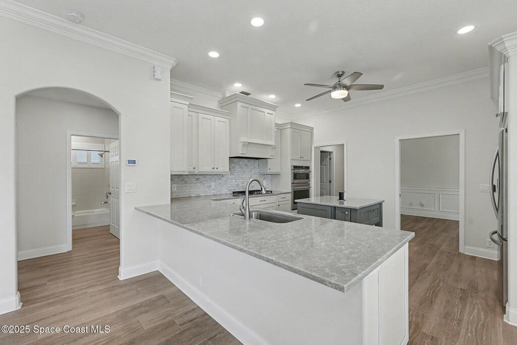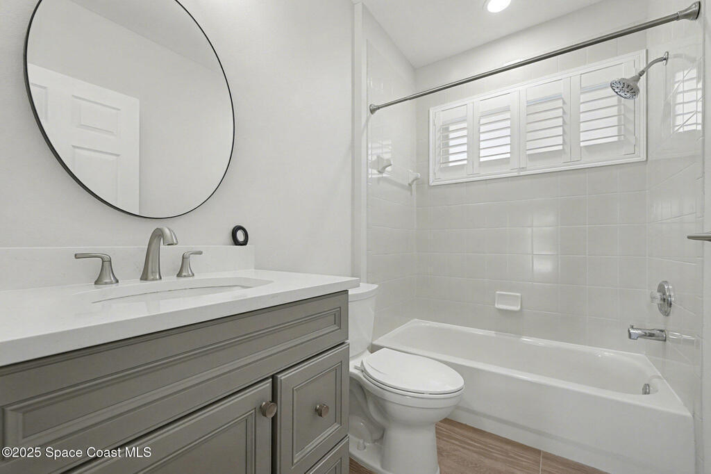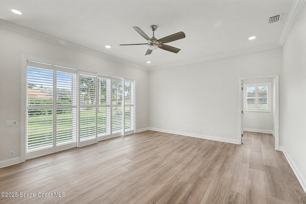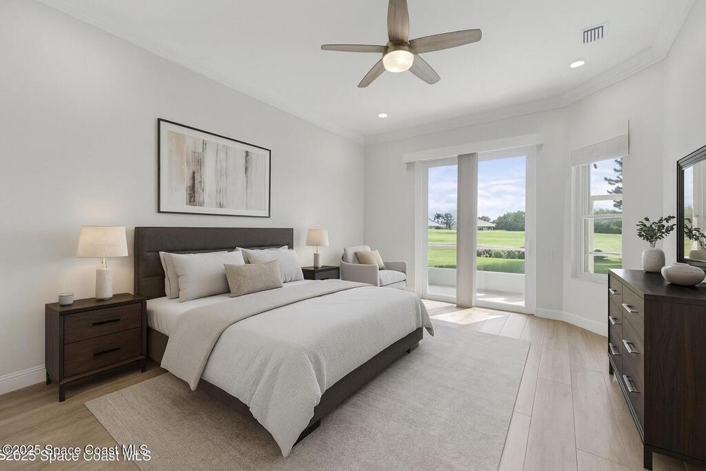 Welcome to an exceptional residence where refined luxury, comfort, and an active lifestyle come together in one of Suntree's most prestigious gated communities. Nestled within Baytree and overlooking the 4th hole of one of Florida's Top 75 golf courses, this stunning four-bedroom, three-bathroom home with a three-car garage offers an elevated living experience designed for those who appreciate quality craftsmanship, thoughtful upgrades, and timeless elegance.Built by one of Brevard County's most respected high-end builders, this home immediately impresses with its commanding presence and meticulous attention to detail. From the moment you step inside, you are greeted by an expansive open floor plan enhanced by soaring high ceilings that create a sense of grandeur and effortless flow. Natural light pours through impact-rated windows and sliding doors, illuminating the beautifully updated ceramic plank flooring that runs seamlessly throughout the entire home.