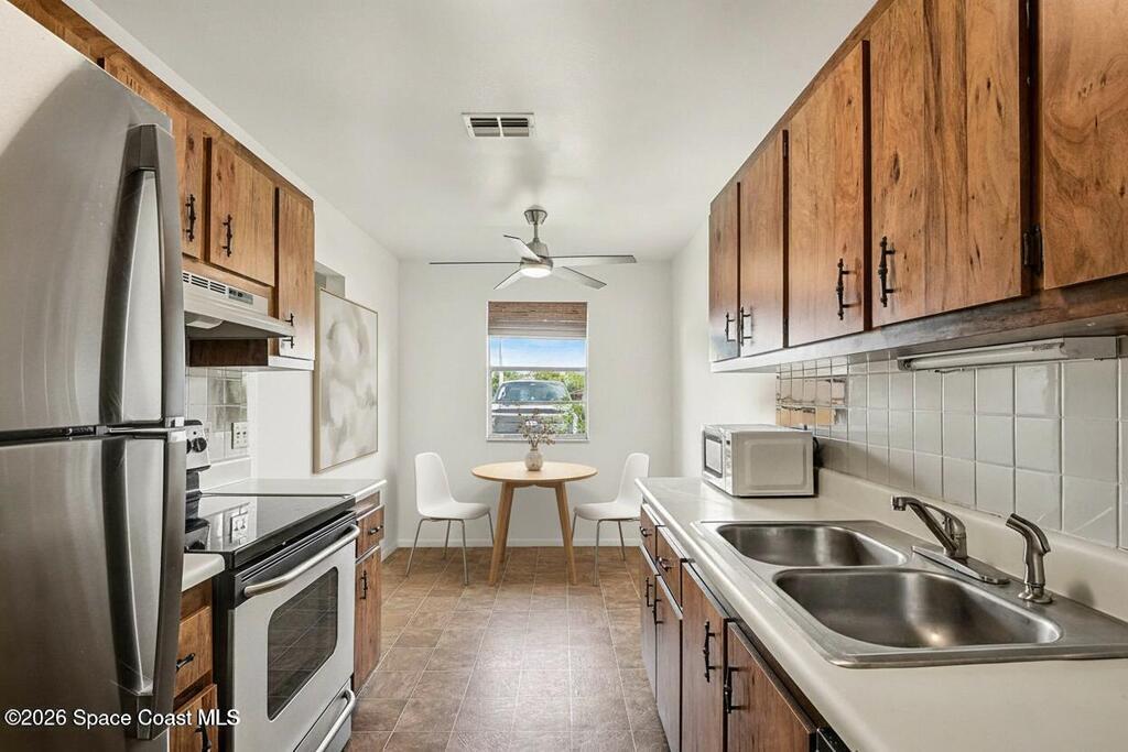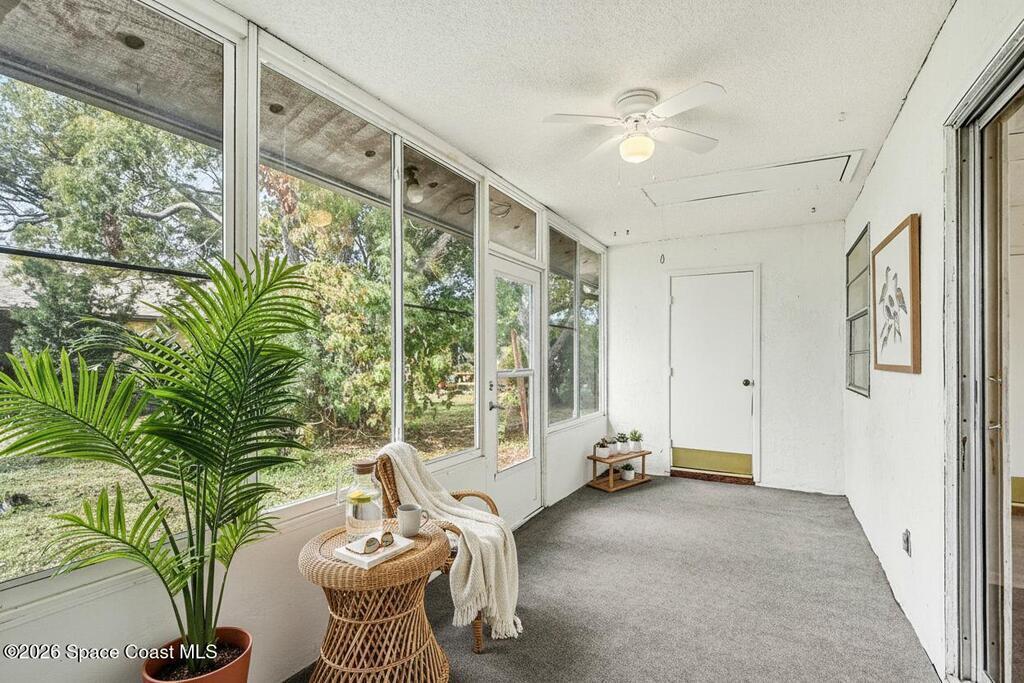 Charming 2-bedroom, 2-bathroom townhouse located in Titusville with convenient access to shopping, dining, and I-95. This well-maintained unit features new ceiling fans and neutral decor, offering a blank slate ready for your personal touch. The Florida room provides additional living space to relax and enjoy the Florida weather year-round. Dedicated laundry and storage space adds convenience, along with two assigned parking spaces. Low HOA fee includes pest control, lawn care, CABLE and now INTERNET making this home both comfortable and affordable. Sizing down or just starting out, this unit is ready to be yours.
