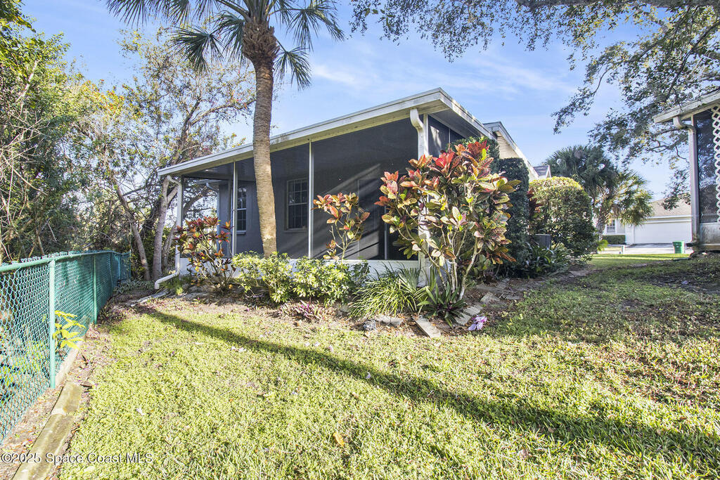 Welcome to this well-maintained 3-bdrm, 2-bath concrete block home located in a quiet, gated community just 5 minutes away from the beach. Enjoy peace of mind w/ a brand-new roof (2025), freshly painted exterior (2025), water heater (2022), & Lennox air conditioner (2023). The spacious kitchen features stainless steel appliances, & a pantry for all your storage needs. All appliances convey including the washer & dryer. The primary bdrm offers berber carpet & a walk-in closet, while the thoughtfully designed layout provides comfort & functionality throughout. Step outside to a lg private screened patio off the back of the home, perfect for relaxing or entertaining year-round. Additional highlights include a screened garage & a low HOA fee of just $360 per quarter, which covers lawn care & access to the community pool. This move-in-ready home offers low-maintenance living in an ideal location.