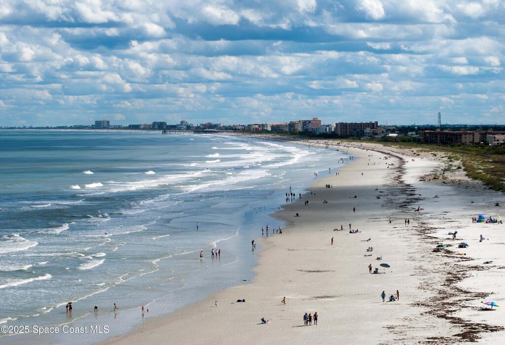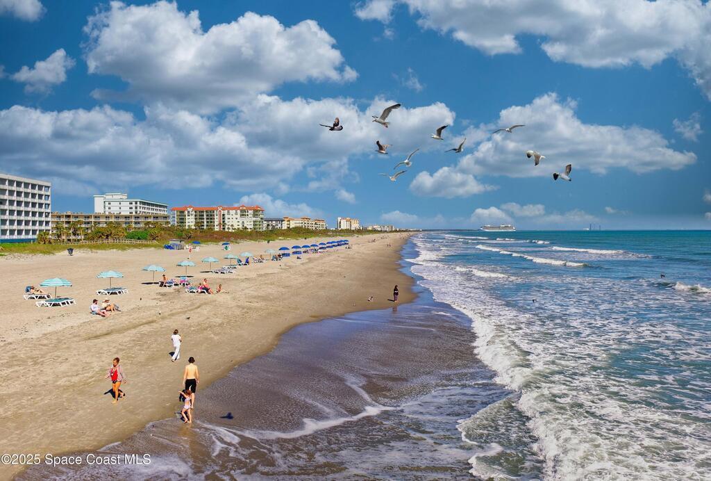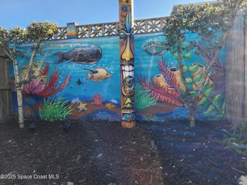 Offered is an adorable 2/2 half duplex with a garage just 2 blocks from the beach! This property is ideal for a short-term rental or your permanent residence. The house has been completely remodeled with shaker style cabinets in the kitchen, bathroom vanities, quartz counter tops, stainless appliances, recessed lighting and a fresh coat of paint, inside and out. The roof and outside a/c were replaced in 2024, circuit panel in 2025. Enjoy the comfort of having impact windows and sliders. The large patio leads to a nicely landscaped back yard accented by local muralist Rick Shores. The seller is offering a $ 5,000 credit towards a hot tub or closing costs. The house is being sold completely furnished and is move-in ready. Additional bedding, supplies and owners cabinets are in place. There is no HOA to be concerned with. Rocket launches can be viewed from the front and back yard or take a quick stroll to the beach. Ask your Realtor(r) to show you this cute beach house today!!