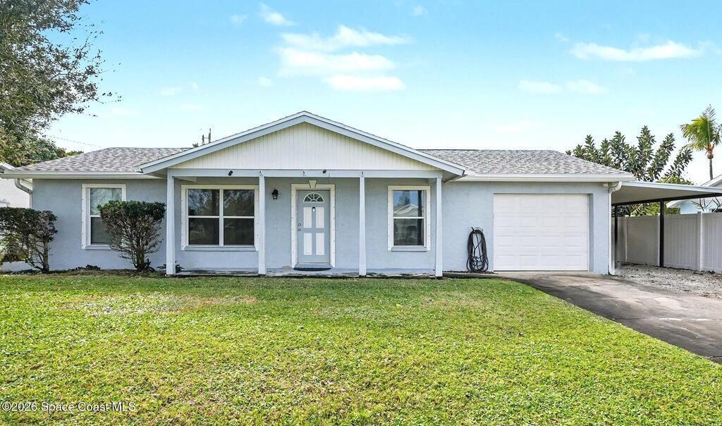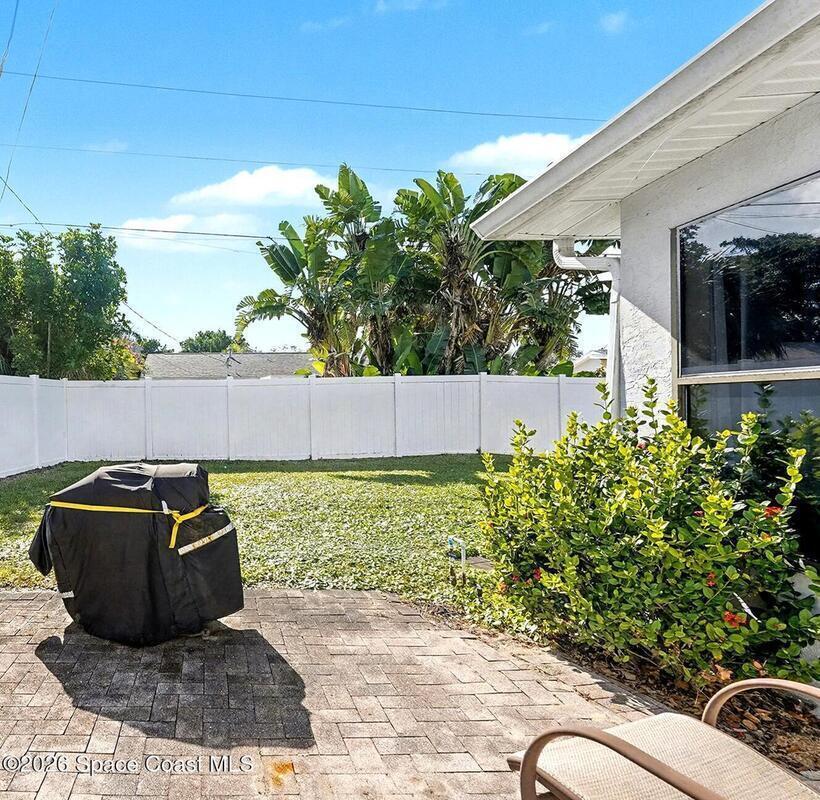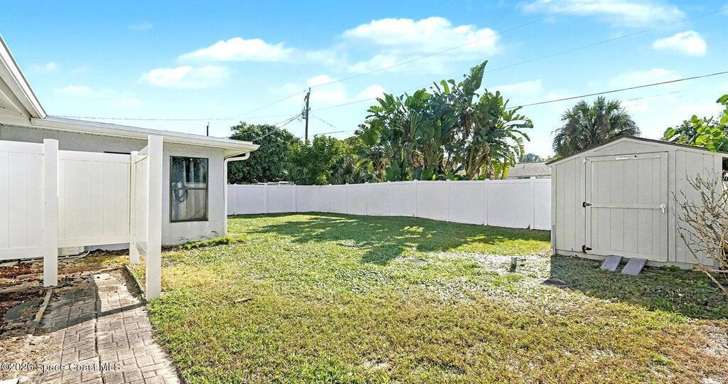 Best buy on the Beach !!! Solid CBS consruction home on a quiet street and a short walk/bike ride to a community beach access, this is affordable beach side living. 3/2 split plan mostly tiles floors with carpet in the bedrooms, enclosed Florida room with separate air conditioner, could easily open to home for extra living area if needed, made a good back office for owner, and fully vinyl privacy fenced backyard with plenty of room for a pool and your toys ,Large patio for sunning in private or cozy nights sitting around a firepit, . Almost new Tuff shed/workshop with shelving for extra storage, 2019 roof, extra large 1 car garage and covered carport to park your boat. Granite counter tops and stainless steel appliances. Located in an A+ school district, this one is a gem.