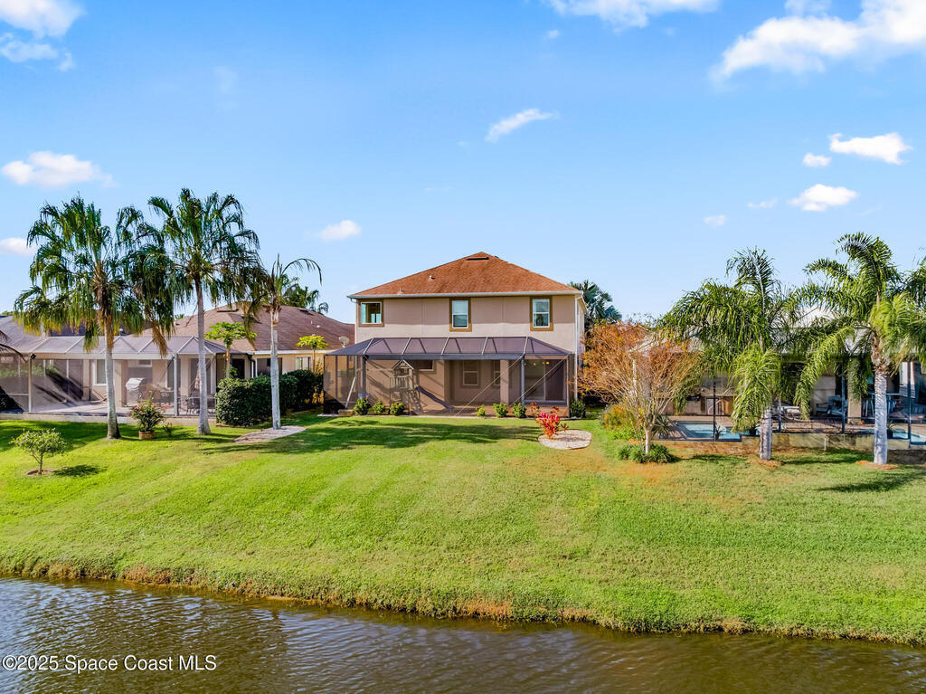 Welcome to 8551 Strom Park Drive, a spacious two-story home designed for families who need room to grow. This home offers 5 bedrooms, 3 bathrooms, and a large media room, providing flexible space for movie nights, homework zones, guests, or multigenerational living. The open layout supports everyday living, while the upstairs retreat creates separation and privacy. Step outside to an extended patio with a panoramic screened view of the lake, perfect for relaxing mornings and peaceful evenings. Located in the highly desirable Strom Park community, residents enjoy top-rated schools, nearby parks, and a welcoming neighborhood feel. Conveniently close to Viera Hospital, shopping, dining, and with easy commute times to Kennedy Space Center and Orlando, this home delivers both space and location for today's active families.
