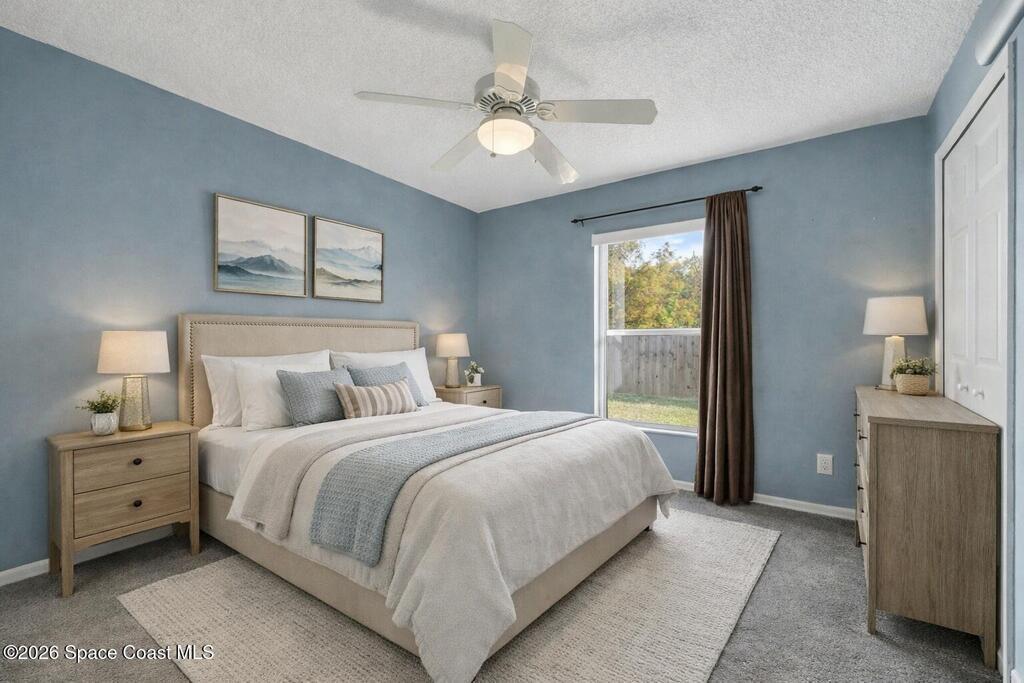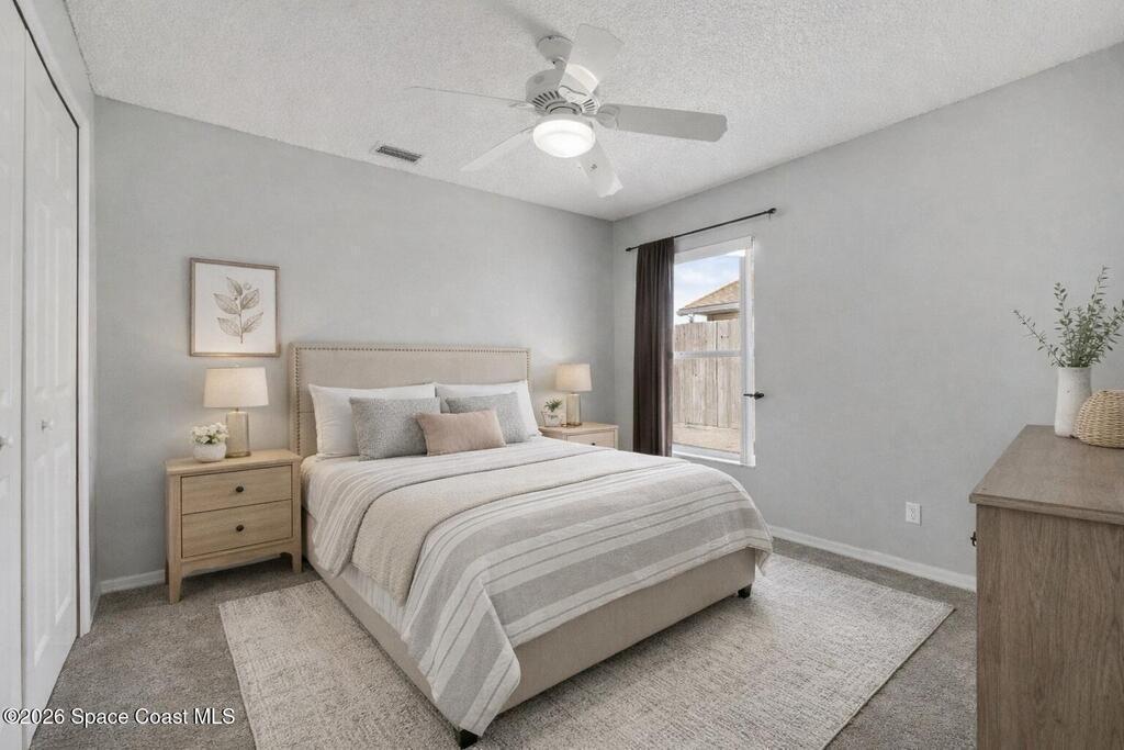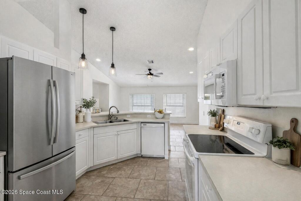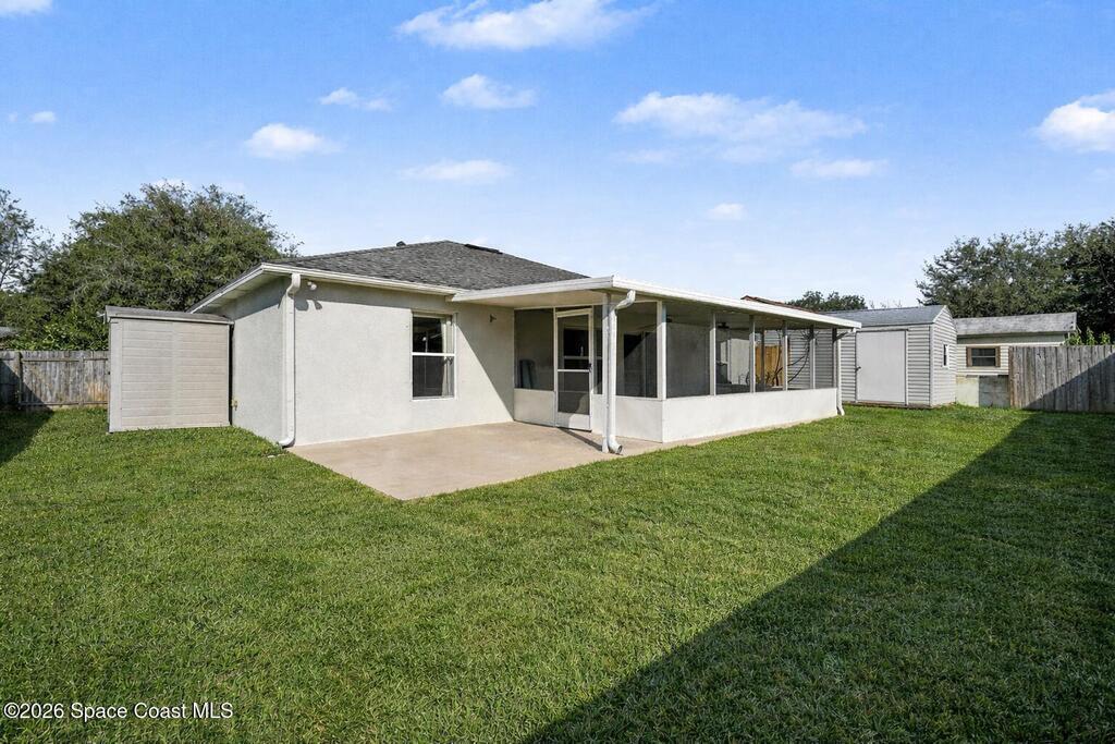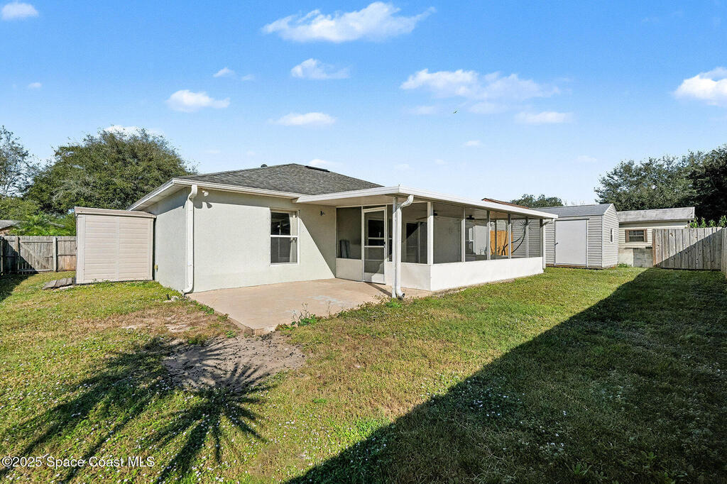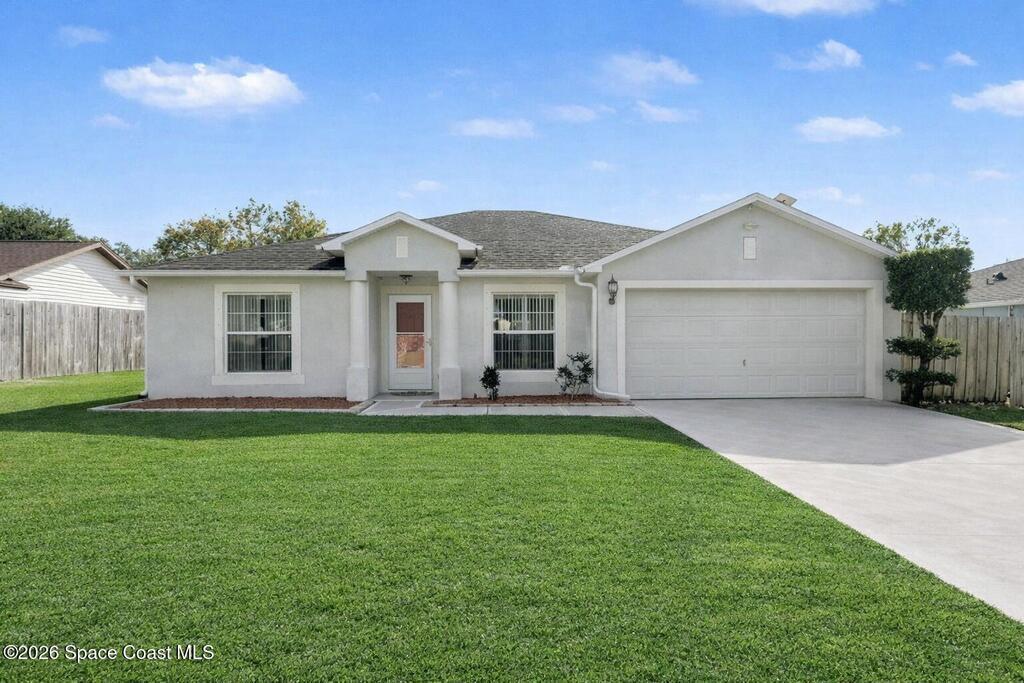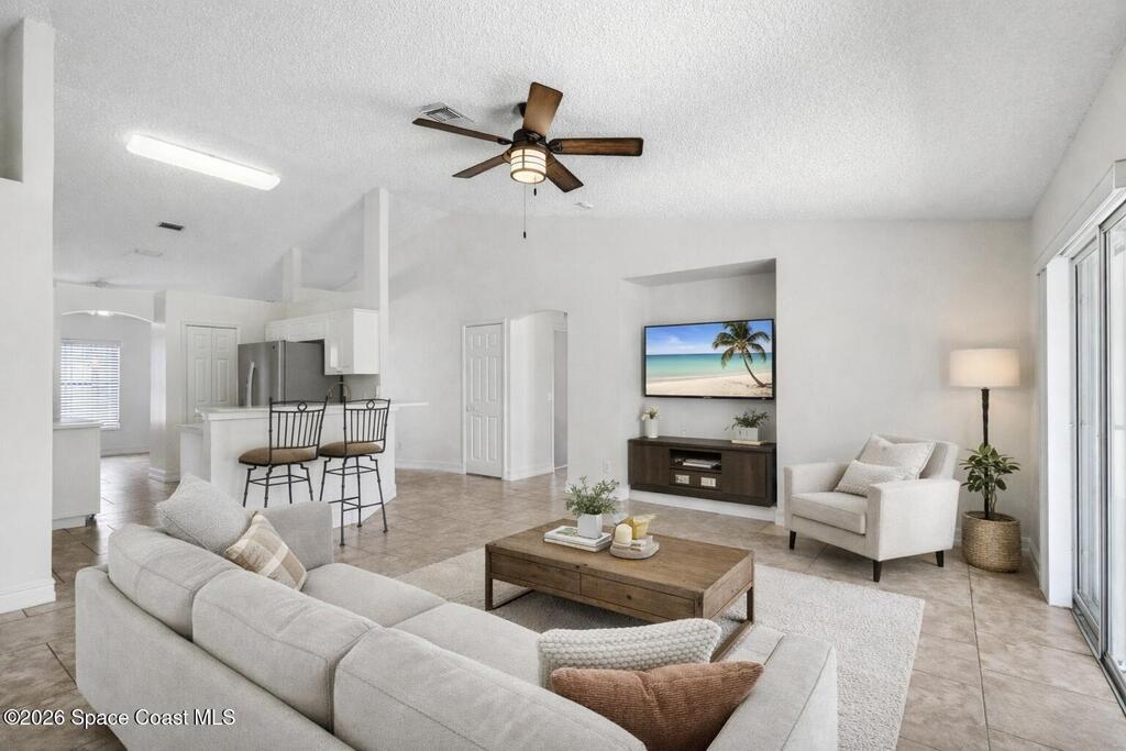 $5,000 in buyer closing cost assistance offered. Comfort, functionality, and access to one of the most unique regions in the state. The open floor plan and vaulted ceilings create a bright, spacious feel throughout the main living areas. The large kitchen features a breakfast bar and flows seamlessly into the dining and family rooms, making it ideal for both everyday living and entertaining.The split-bedroom layout provides added privacy, with a generously sized primary suite featuring a walk-in closet and a bathroom with a tub and separate shower. Additional bedrooms are versatile and well-proportioned. Enjoy indoor-outdoor living with a screened porch overlooking a fenced backyard, perfect for relaxing or hosting guests.Close to KSC, beaches, wildlife preserves, the Indian River Lagoon, boating, fishing and more. Watch rockets from your yard!2018 roof, 2017 HVAC. Some photos are AI Generated to show potential and are labeled AI