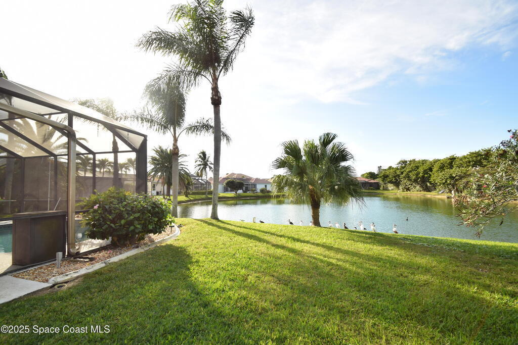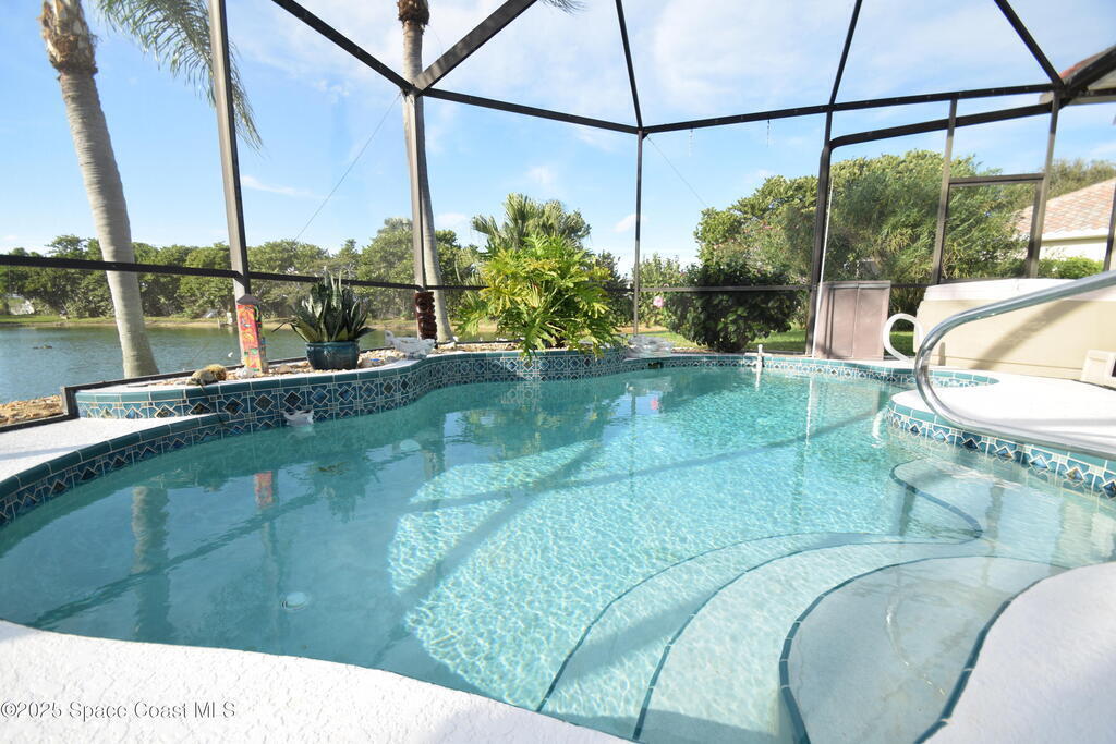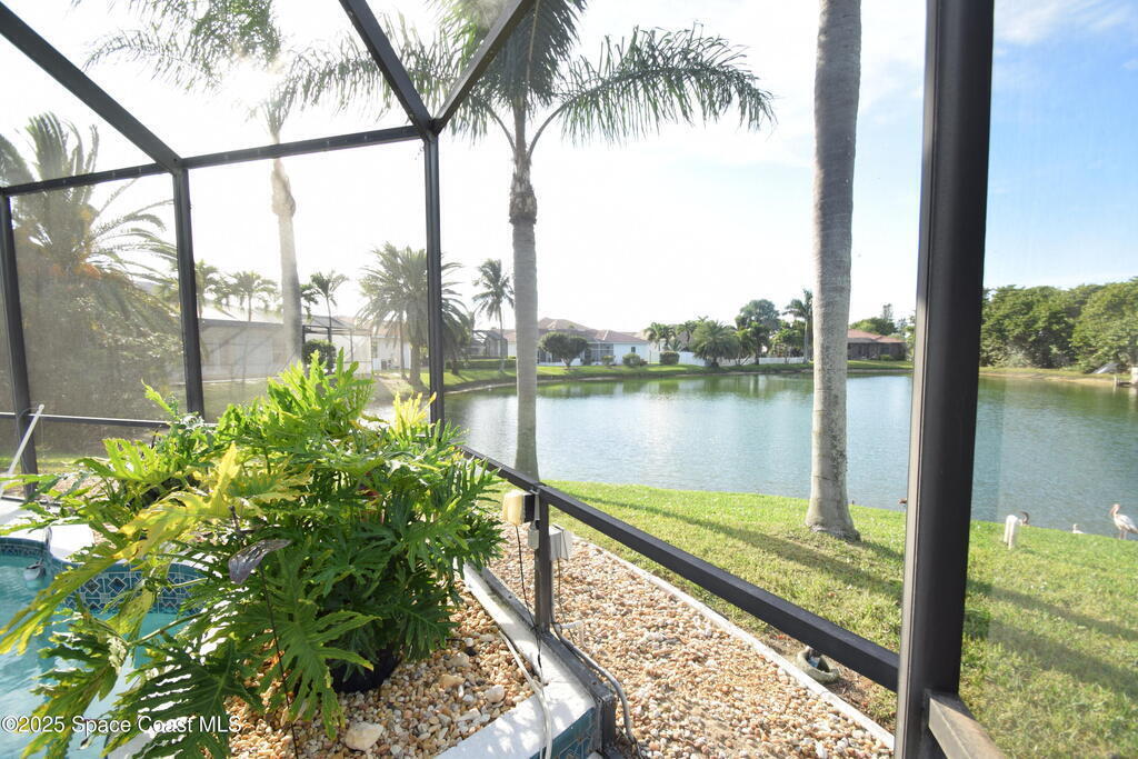 Welcome Home to Melbourne Beach FL, Ocean Ridge II of Brevard! A gated community with a nature preserve welcoming entry! Enjoy the ocean breeze by the screened in pool oasis with your relaxing direct view of the beautiful lake! This home is the perfect size offering 3 spacious bedrooms, split bedroom design, an Amazing family room with dining room, an OPEN PLAN concept. The well designed Kitchen features a step up breakfast bar that opens to the breakfast nook with picture perfect views! A large owners suite has a slider door access to your pool oasis and separate hot tub! Enjoy dual closets, a large vanity and separate tile shower & soaking tub. Other features: Tile flooring, ceiling fans, brick paver driveway, FULL SOLAR on both home and pool - HUGE SAVINGS on your monthly energy costs! Gorgeous leaded glass front door with side-lights, slider door access to covered porch / pool area. The guest bath offers a pool door access too! The oversized 2 car garage 22 x 22! A MUST SEE!