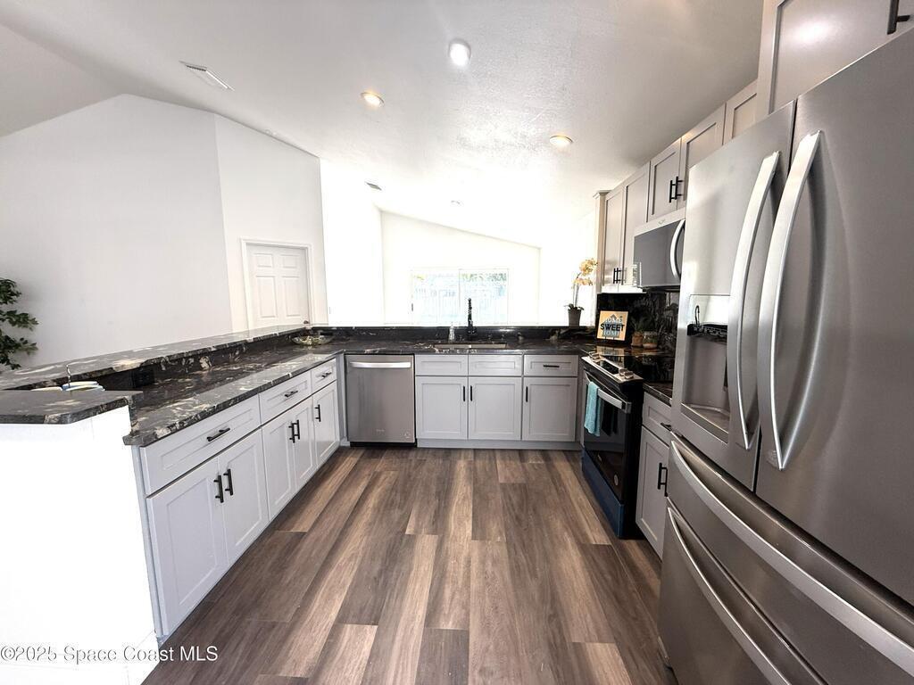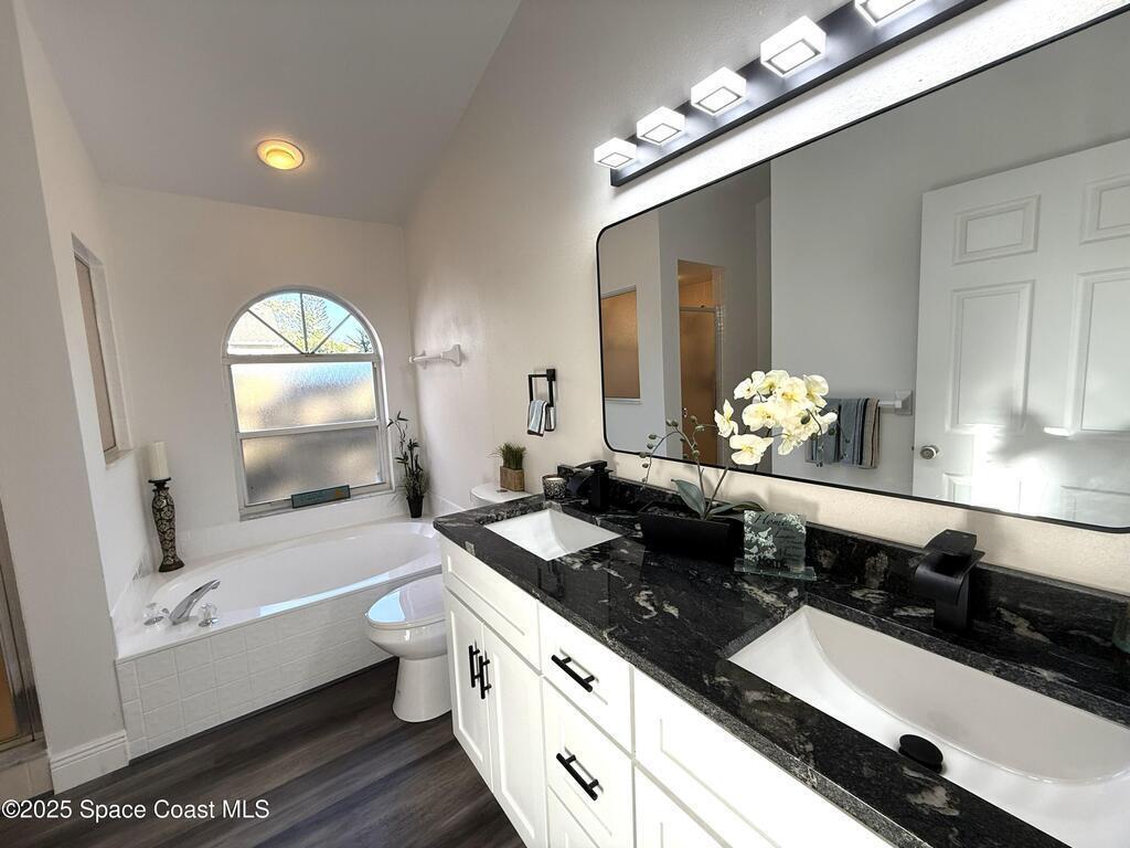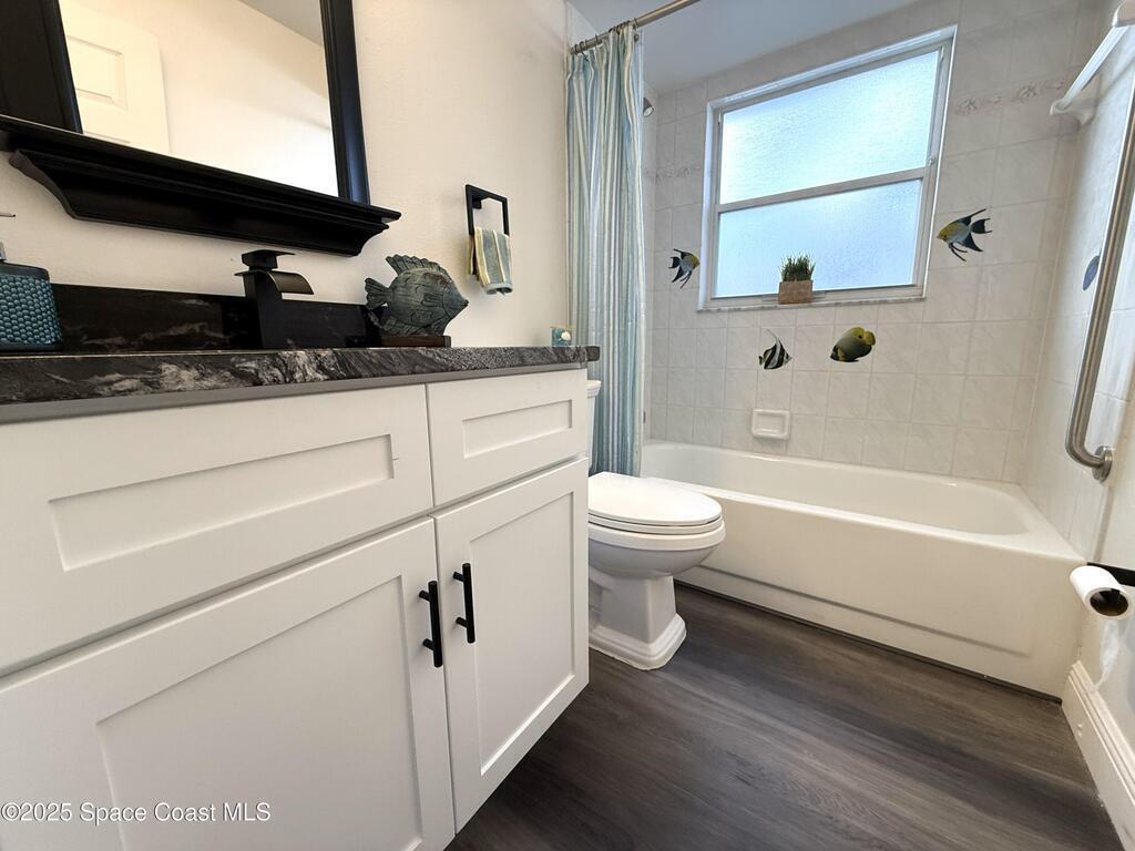 Stunning 3BR/2BA/2 Car garage in a serene location at Pebble creek.This home is updated throughout w/luxurious updates that you will love.Open floor plan w/high ceilings & large living areas boast a comfortable & inviting atmosphere.New vinyl plank flooring throughout adds a modern fresh look.All New fully equipped kitchen w/sleek soft-close cabinetry,elegant high grade granite tops,& S.S. appliances create an impressive & functional cooking space.Two breakfast bars.Primary bedroom & bath offer a spacious layout w/soaking tub, enclosed walk-in shower,new double vanity w/granite tops,new faucets,mirror & lighting.Two guest bedrooms & Updated guest bath w/new vanity. Family room slider leads to a screened-in enclosure, perfect for fun gatherings or unwind overlooking the canal. Two car Garage .Freshly painted interior & exterior. Excellent location, just mins to Patrick Space Force,great shopping,schools, parks, fine restaurants & the beach.Easy access to major roadways & airports.