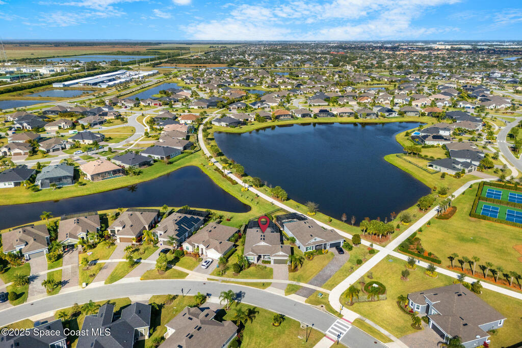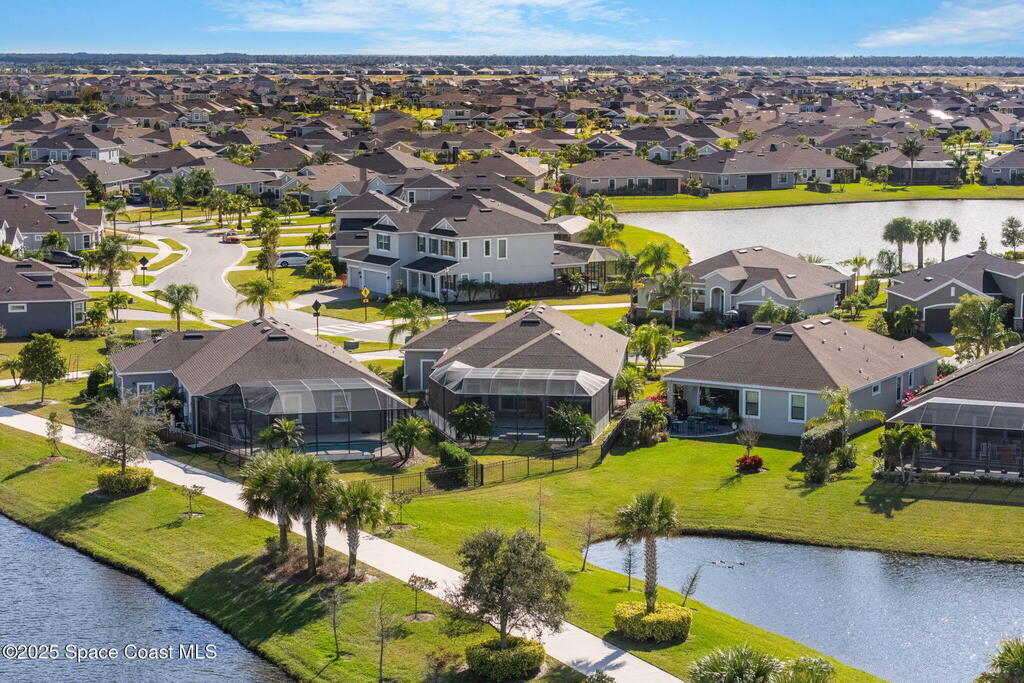 Built in 2021, this pool home in Trasona at Addison Village lets you skip the build process and enjoy a home and pool already complete. The large screened and trussed lanai features a freeform saltwater pool with waterfall and overlooks multiple ponds and a walking trail. Peaceful pond views make the pool deck a favorite spot at dusk. Inside, the open layout includes eight foot doors, nine to ten foot ceilings, plantation shutters, and recessed lighting. The kitchen offers granite, premium cabinetry, a natural gas range, decorative backsplash w/ glass block inlays, generous counter space, and a walk in corner pantry. The primary suite features a tray ceiling, French door entry, large walk in closet, and bath with dual granite vanities plus a tile to ceiling shower with built in seat. The home includes a two car garage, metal storm shutters, a gas instant water heater, and washer and dryer convey. Addison Village amenities include a clubhouse, pickleball, dog park, and walking trails.