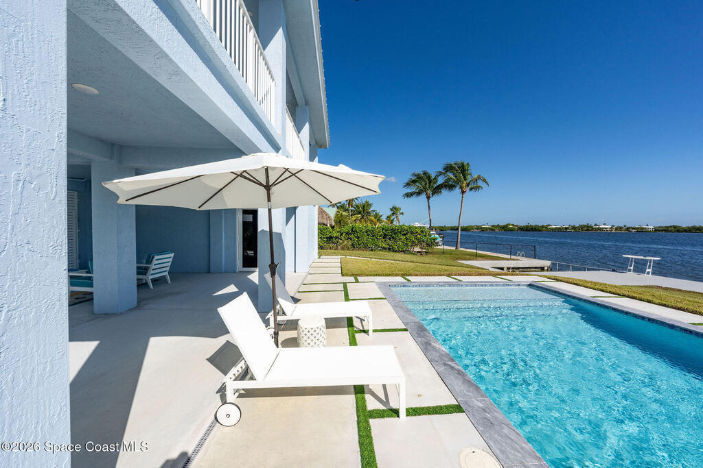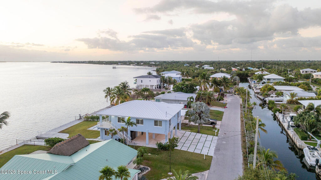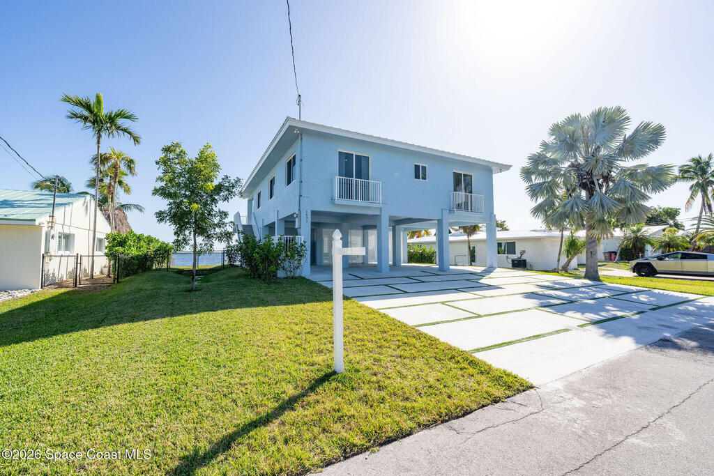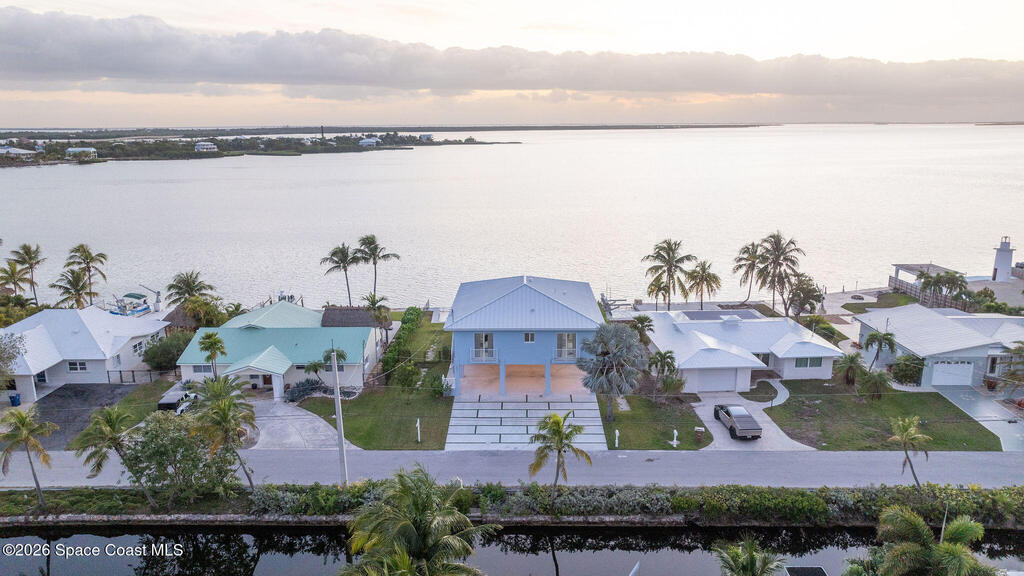 Seller motivated and furnishings can convey. This 2023 new construction waterfront home in Tropical Bay Estates offers luxury coastal living with stunning sunrise and water views from nearly every room. Built with full CBS construction on 10-foot stilts, it features 10-foot ceilings, 8-foot doors, impact windows, and a metal roof for durability and storm protection. The 2,000+ sq ft open floor plan highlights the views, while a flexible lower-level bonus room can serve as an entertainment space or additional bedroom. Outdoor amenities include a heated saltwater pool, private boat slip, and a 75-foot concrete seawall--perfect for boating and fishing enthusiasts. Move-in ready with all appliances included, this home is ideal as a primary residence or high-end rental in a serene neighborhood known for its natural beauty and key deer sightings.