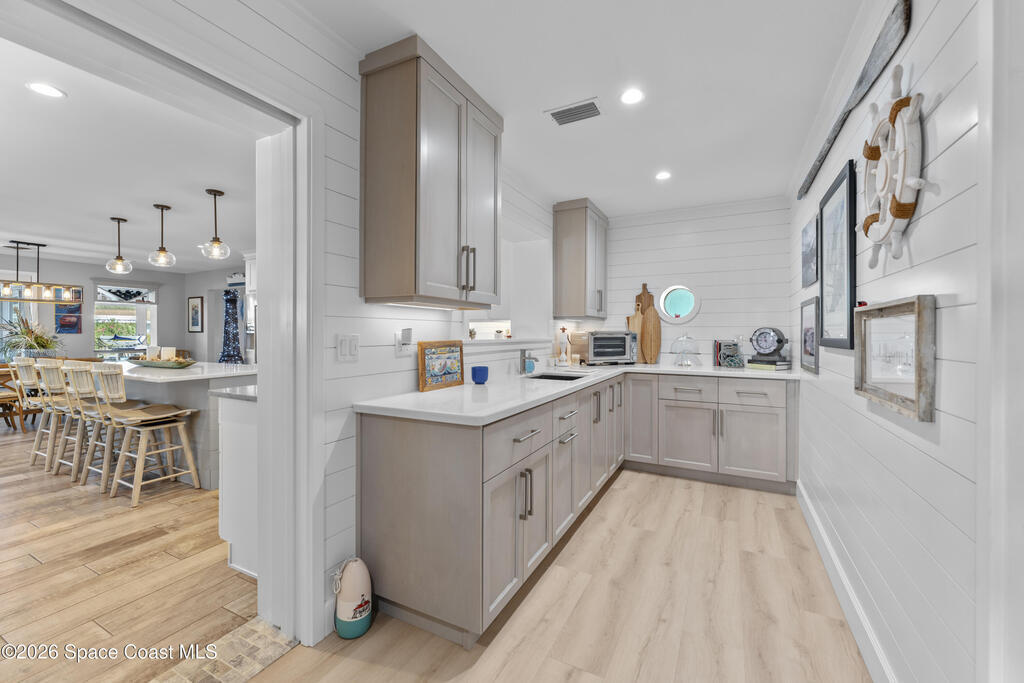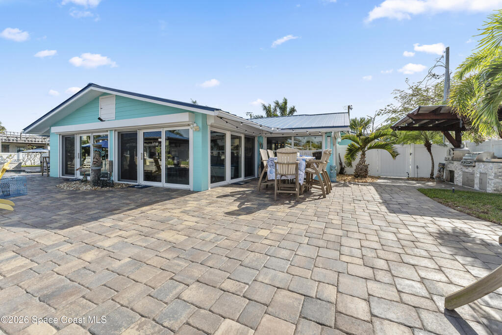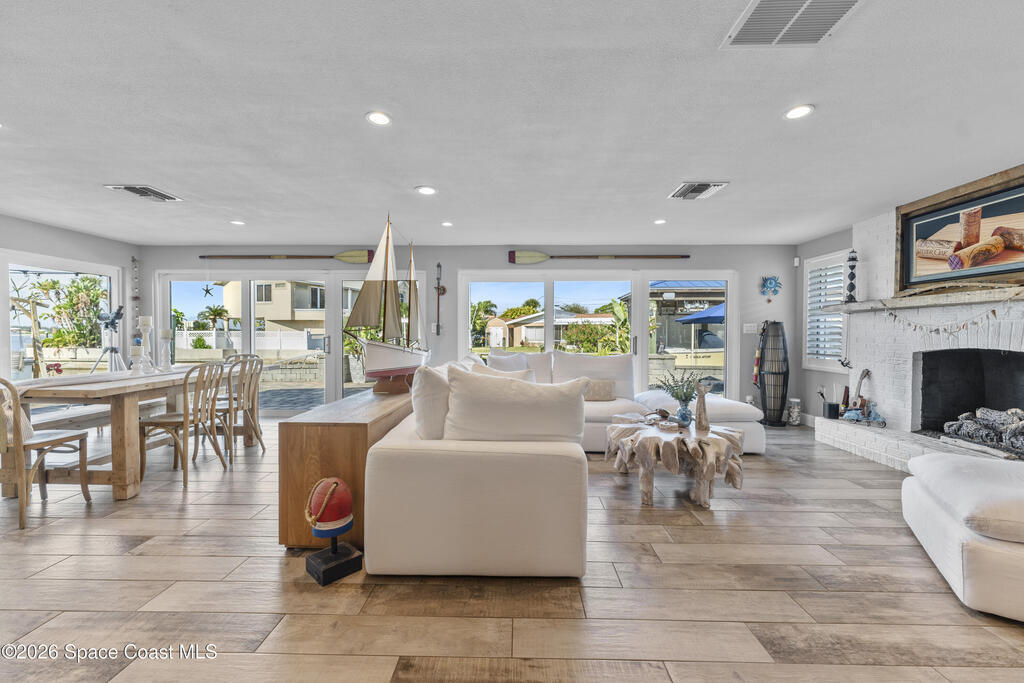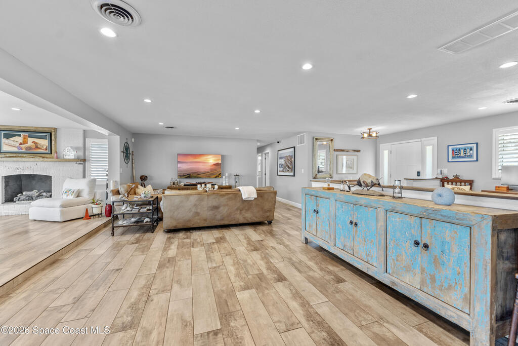 From the moment you arrive, it's clear that this home has it all--beginning with the beautifully pavered driveway and striking curb appeal that set the stage for what's inside. This is not just a residence, but a refined coastal lifestyle. Stunning inside and out, this impeccably updated home offers effortless Florida living just two blocks from the beach- an easy walk, quick bike, or golf cart ride away. Designed with an open, light-filled floor plan ideal for elevated entertaining, the home centers around a large custom kitchen featuring solid wood custom cabinetry, quartz countertops, and a spacious island with seating. A thoughtfully designed laundry/mudroom and butler's pantry just off the kitchen adds both functionality and elegance.The spacious living/family room features a propane fireplace and opens seamlessly to breathtaking views of the backyard and water, creating a warm and inviting space for both everyday living and entertaining. Step outside to a private outdoor oasis