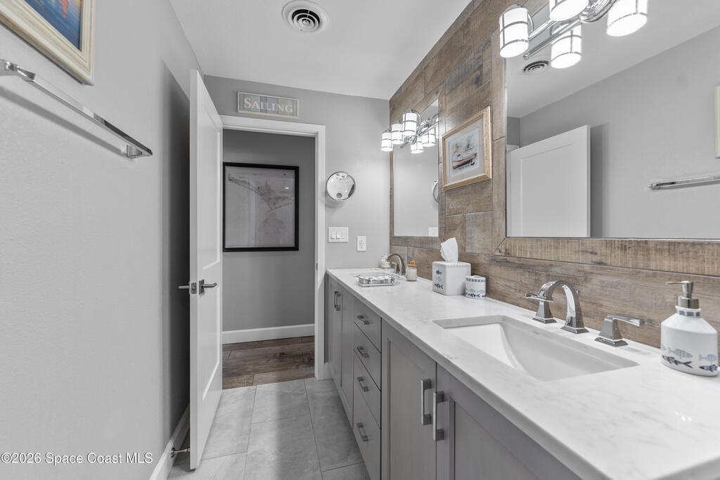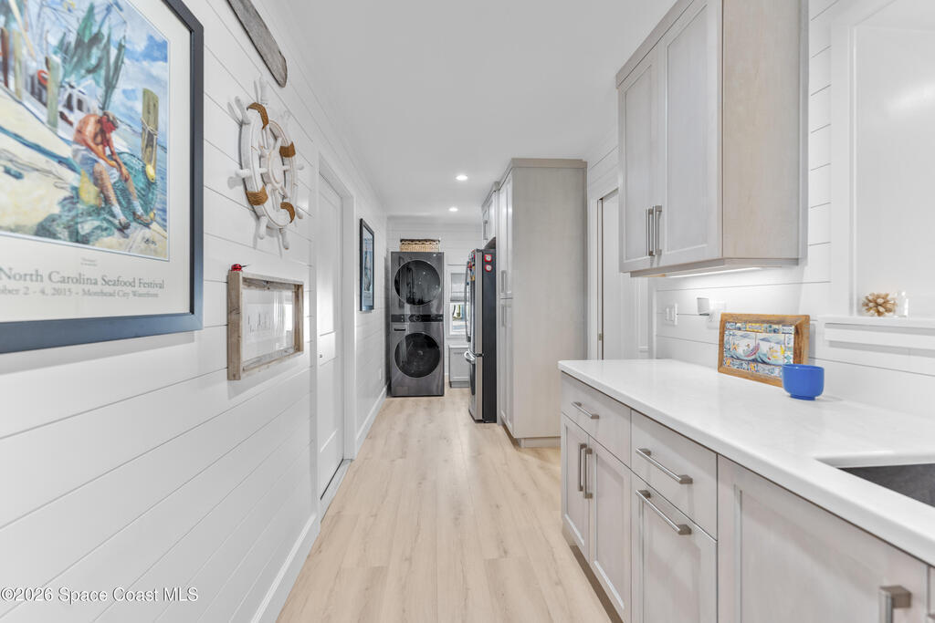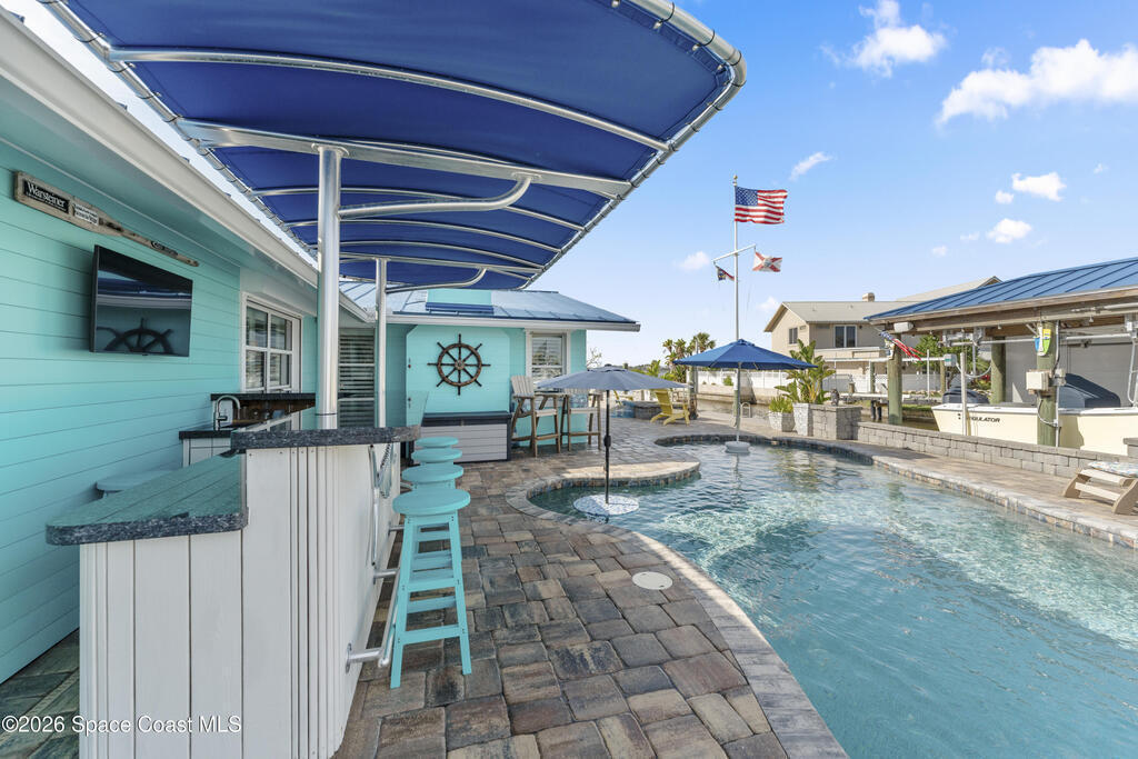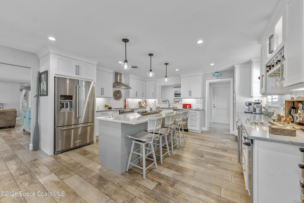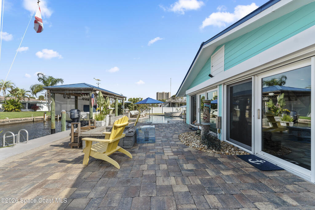 From the moment you arrive, it's clear that this home has it all--beginning with the beautifully pavered driveway and striking curb appeal that set the stage for what's inside. This is not just a residence, but a refined coastal lifestyle. Stunning inside and out, this impeccably updated home offers effortless Florida living just two blocks from the beach- an easy walk, quick bike, or golf cart ride away. Designed with an open, light-filled floor plan ideal for elevated entertaining, the home centers around a large custom kitchen featuring solid wood custom cabinetry, quartz countertops, and a spacious island with seating. A thoughtfully designed laundry/mudroom and butler's pantry just off the kitchen adds both functionality and elegance.The spacious living/family room features a propane fireplace and opens seamlessly to breathtaking views of the backyard and water, creating a warm and inviting space for both everyday living and entertaining. Step outside to a private outdoor oasis
