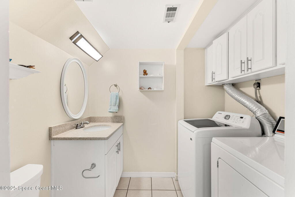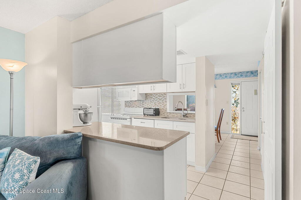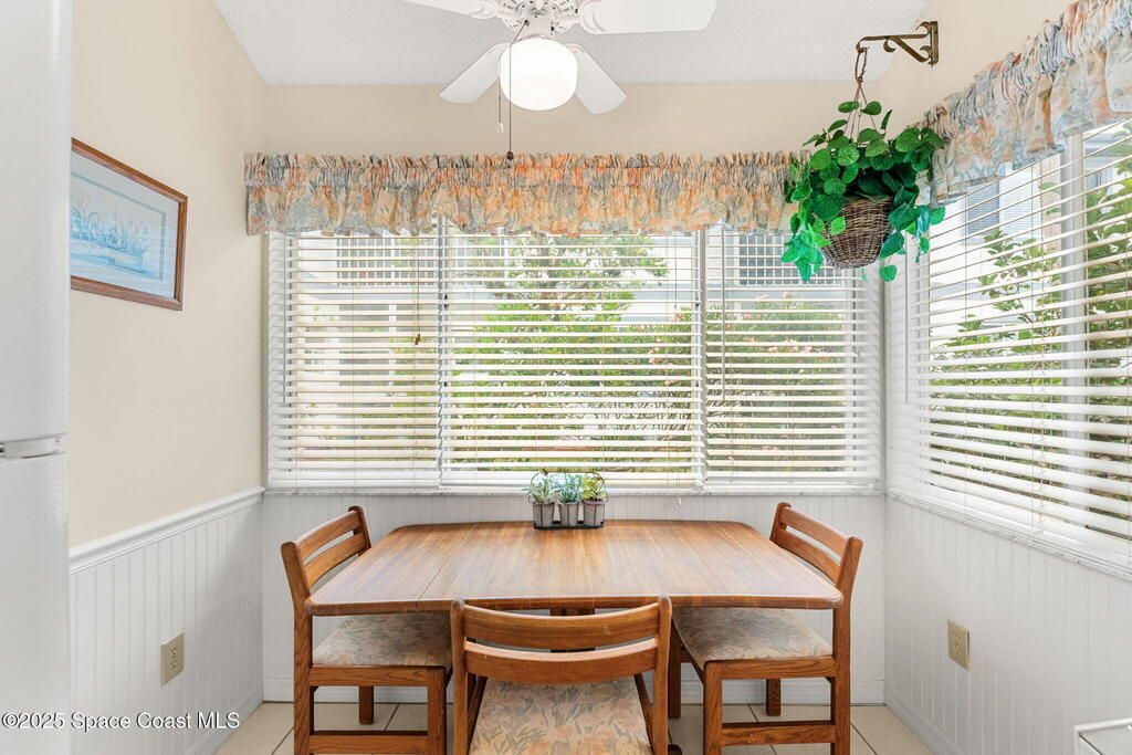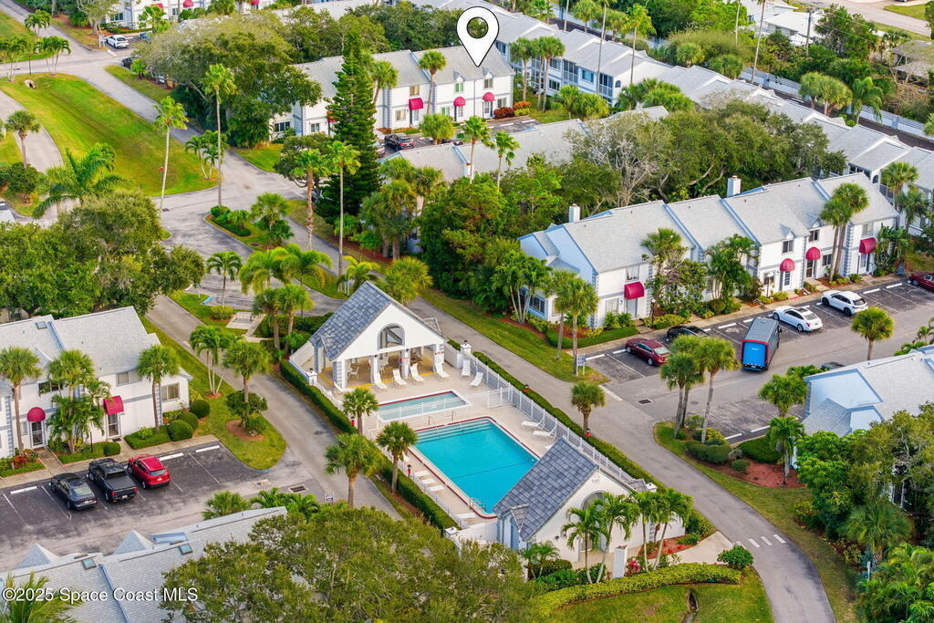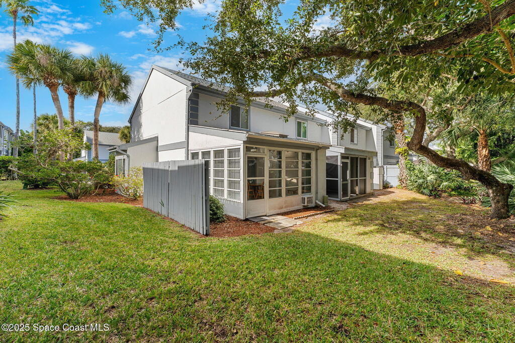 Gated community value with a rare 2-story end-unit townhome plus a strong investment angle: 1-month minimum rental. Big-ticket updates include a 2-year-old roof, 2023 A/C & 2024 water heater. Inside, a formal dining space flows to an updated kitchen with white cabinetry, solid surface counters & an eat-in nook. The living area opens to a large enclosed Florida room featuring a whitewashed vaulted ceiling & peaceful views of a shaded commons wrapped in lush foliage, plus a generous storage closet. A main-level half bath includes washer & dryer. Both bedrooms feature updated en-suite full baths for privacy. Resort-style amenities deliver beach access, clubhouse, fitness rm, pool, basketball, racquetball & pickleball/tennis courts. Just a 3-minute bike ride to Port Canaveral dining & 6 minutes to Jetty Park.