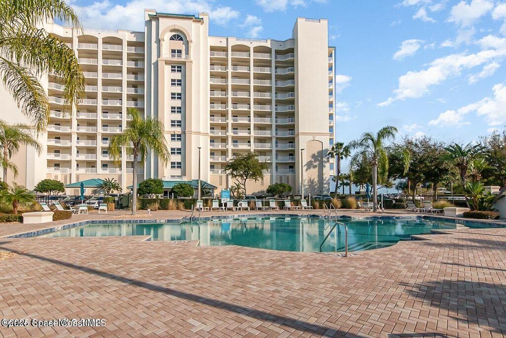 Million dollar view and the Florida lifestyle awaits a new Buyer here at Harbor Pointe. This high end riverfront community has THE BEST VIEWS of the rocket launches, guaranteed! This 11th floor unit is a desirable floor plan with the larger balcony, sliding doors on the primary bedroom, higher ceilings, upgraded cabinetry, wine cooler, electric hurricane shutters on front windows and patio, storm door, oversized private garage and newer AC. New carpet just installed and it has been freshly painted (walls, trim and doors) so it is move in ready. Community highlights are private marina, large floorplans, dual elevators per building and quiet location off major roads! Community offers several onsite amenities as well. Gated entrances, heated saltwater pool, hot tub, gym, dry sauna, basketball, tennis, and pickleball courts, clubhouse, private marina and social activities. Utilities included in monthly fee are cable, internet & water. Don't wait, schedule a private showing today!