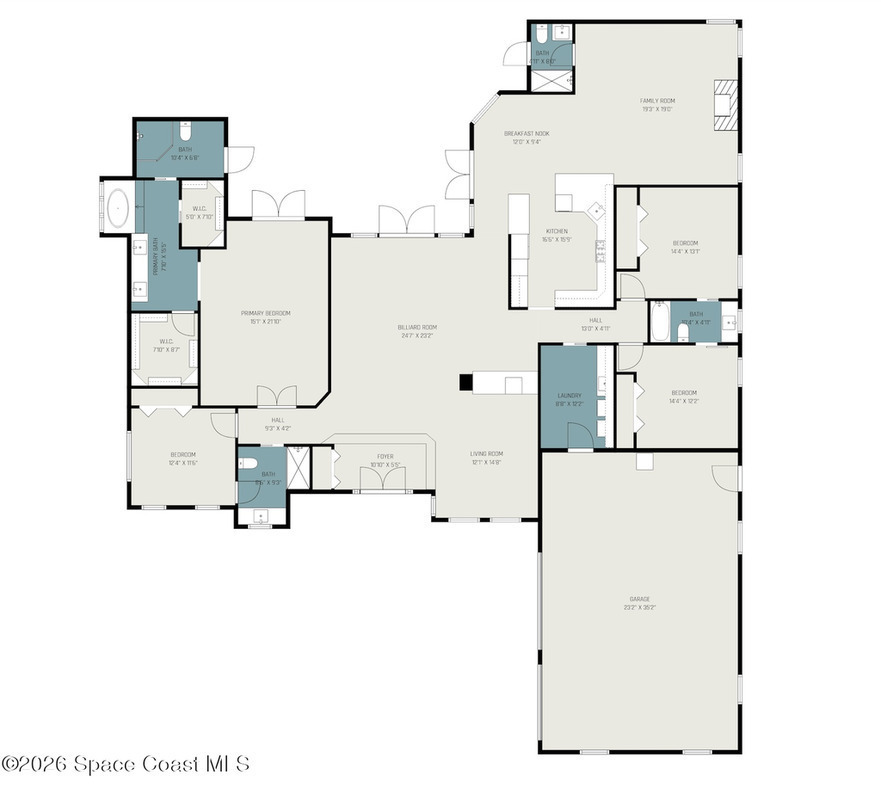 - Interior FeaturesBreakfast Bar, Ceiling Fan(s), Entrance Foyer, His and Hers Closets, Jack and Jill Bath, Open Floorplan, Primary Bathroom -Tub with Separate Shower, Primary Downstairs, Split Bedrooms, Vaulted Ceiling(s), Walk-In Closet(s) and Wine Cellar
