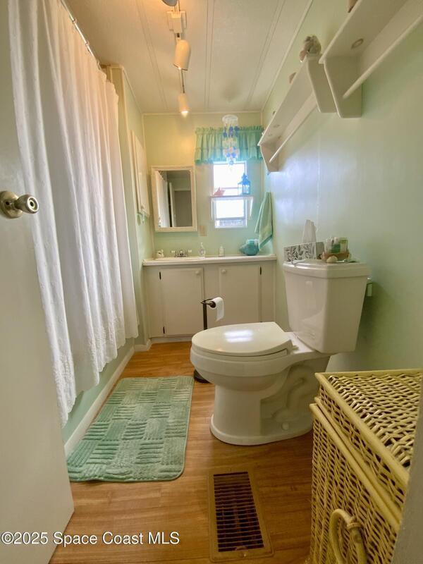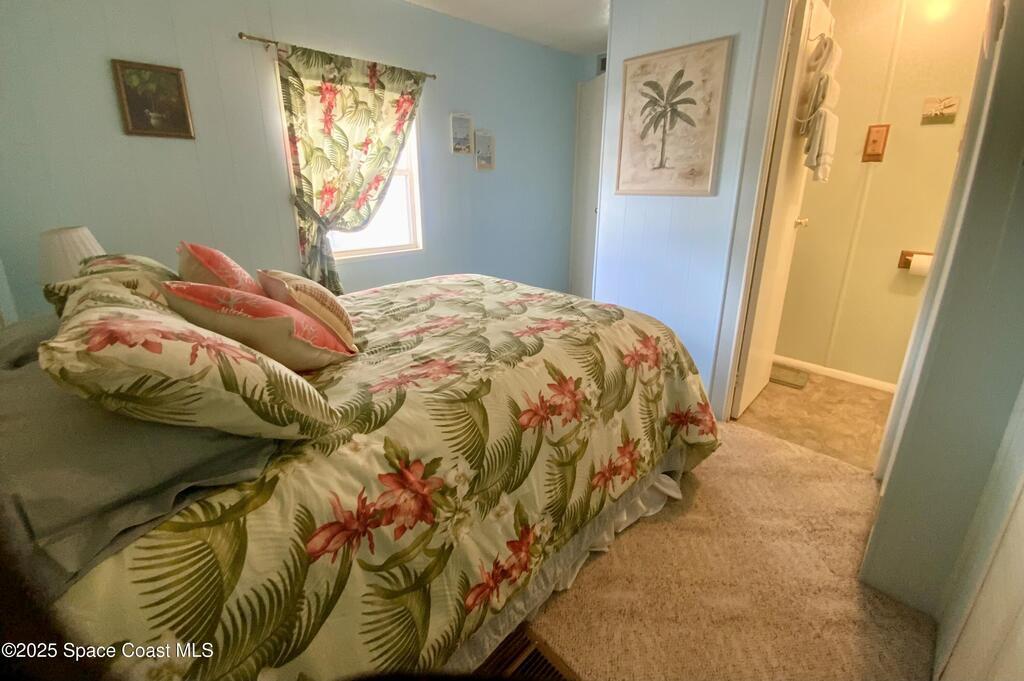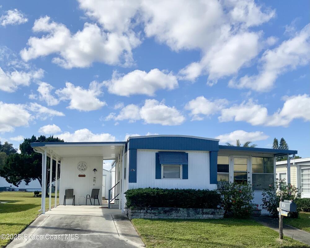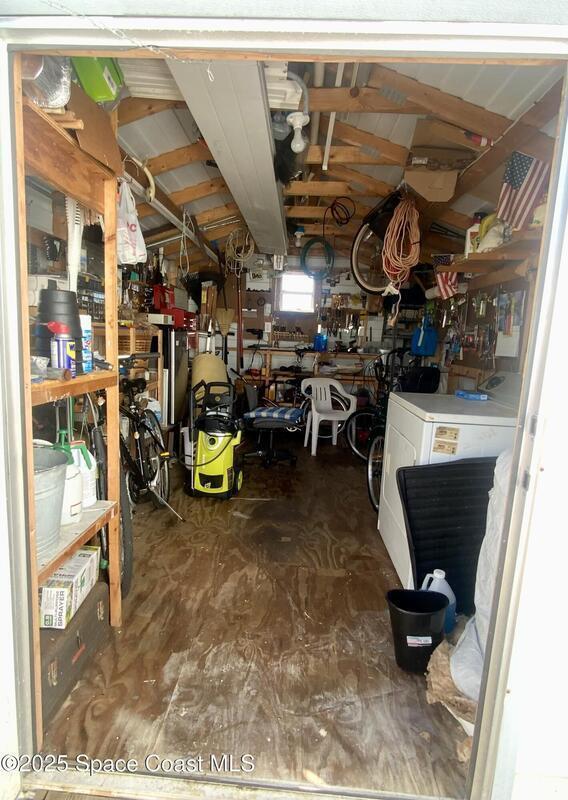 ROOM TO ROAM IN THIS 2BD/2BA FURNISHED HOLIDAY PARK HOME! NO LOT RENT! LAND IS OWNED. Not just a basic singlewide; instead this home has extra room for some personal space too! There is a semi-private screened porch, perhaps a good spot for having morning devotions or quiet conversation, there is a Florida Rm for overnite guests or for doing puzzles & crafts, or watching TV. And, there are 2 sheds; the larger one for tools & workshop. Inside has a split-Bdrm design w/ a bdrm w/ its own bath in front & a bdrm & a bath in the back. NEW ELECTRICAL PANEL BOX in 2025 & UNDER HOME VAPOR BARRIER DONE IN 2025! Plus, there are no immediate backyard neighbors. Holiday Park is an active 55+ community where residents enjoy 2 swimming pools, billiards, bingo, dances, luncheons, corn hole & much more. Beaches are about 20 mins away. Shopping, medical, restaurants, banks, pharmacies, post office, & I-95 are within a mile. Lawn, cable tv & internet are included in yearly maintenance fee.