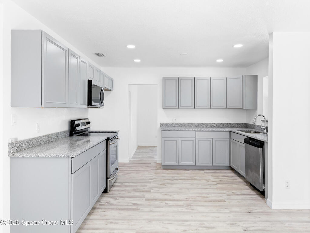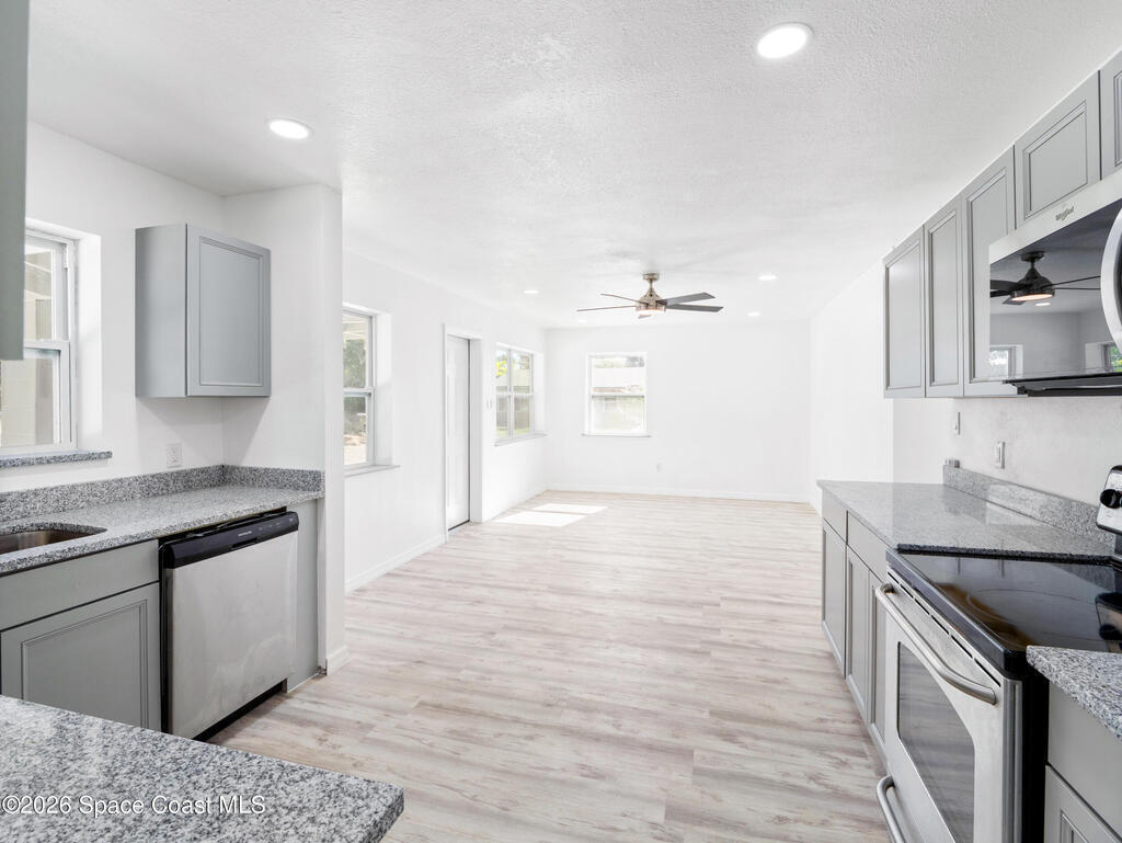 Tastefully Remodeled home just steps from the river! New Hurricane Impact Windows and Slider, Brand New A/C & Water Heater, Brand New Septic, 2019 Roof! Both bathrooms have been fully remodeled and the kitchen boasts brand new cabinets, and granite countertops. This move in ready home has brand new LVP flooring, an open floor-plan, plenty of natural light and views of the river from the kitchen and living room. The outdoor space offers plenty of potential for enjoying Florida's year around sunshine. Whether you envision morning coffee outdoors, gardening, or hosting gatherings, the outdoor space provides room to make it your own. Nestled in the heart of Rockledge, located on a quiet street, this property offers a comfortable blend of classic Florida living and everyday convenience. The home sits just minutes from local schools, shopping, dining, and easy access to major roadways, making daily commutes and weekend outings effortless.