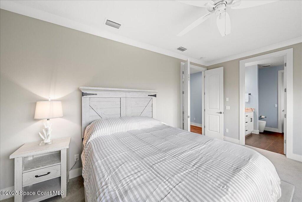 This coastal retreat built in 2018 pairs modern style with the laid-back charm of Melbourne Beach. Just steps from direct beach access, the home features an open floor plan with soaring ceilings, quartz countertops, a gas range, stainless steel appliances, and luxury vinyl plank flooring throughout. A gas tankless water heater delivers on-demand comfort, while the tile roof, impact windows and doors, and newer HVAC condensers offer durability, efficiency, and peace of mind. Beyond the bedrooms, a flexible bonus room currently used as an office easily adapts as a fourth bedroom, media room, or guest space. Light-filled interiors create an inviting setting for both entertaining and everyday living. More than a home, this is a lifestyle set in a friendly coastal community with A-rated schools, unspoiled natural beauty, and private beaches within the largest sea turtle nesting area in the Western Hemisphere.