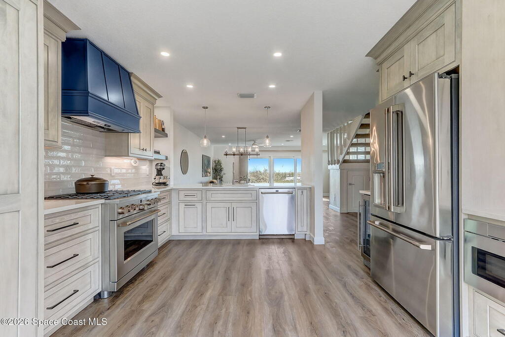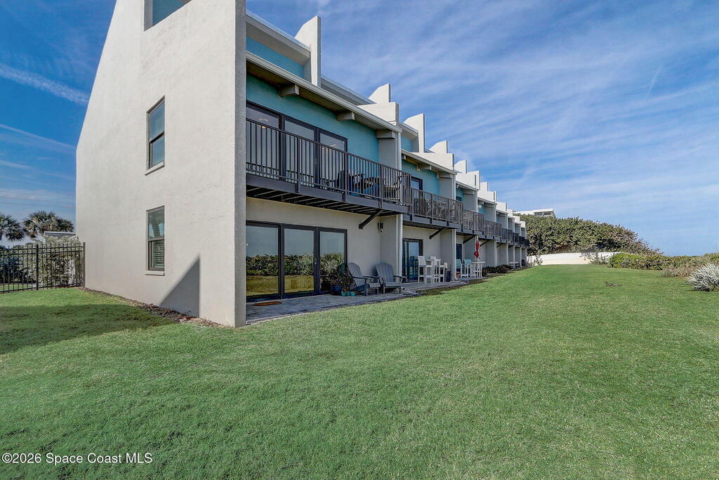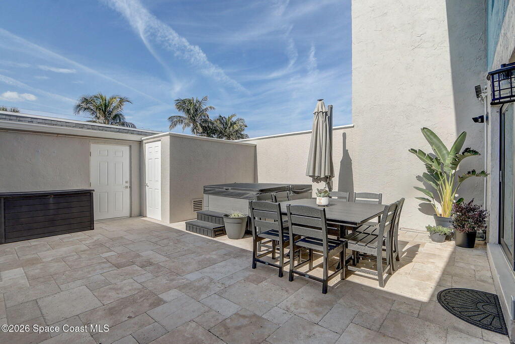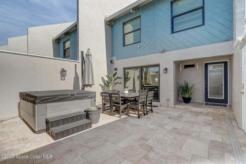 Luxury end-unit living just steps from the beach, this exceptional three-story residence delivers the coastal lifestyle you've been waiting for with high-end finishes, open spaces, and panoramic ocean views. The main living area is located on the first level and features a gourmet custom kitchen with quartz countertops, extended premium cabinetry, a wine cooler, luxury vinyl plank flooring, and one of only two units in the community offering natural gas for cooking and an instant water heater. The living space opens to a large rear patio overlooking the ocean, perfect for indoor-outdoor living and entertaining. The second level hosts the primary suite with a private oceanside balcony, along with two well-appointed guest bedrooms, while the third level offers a versatile fourth bedroom ideal for a home office, guest suite, or flex space. As a desirable end unit, the home welcomes you through a private courtyard entrance where you'll find a heated spa and patio area,
