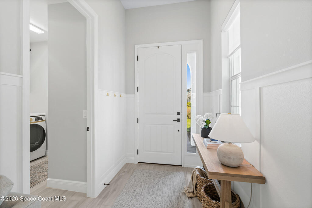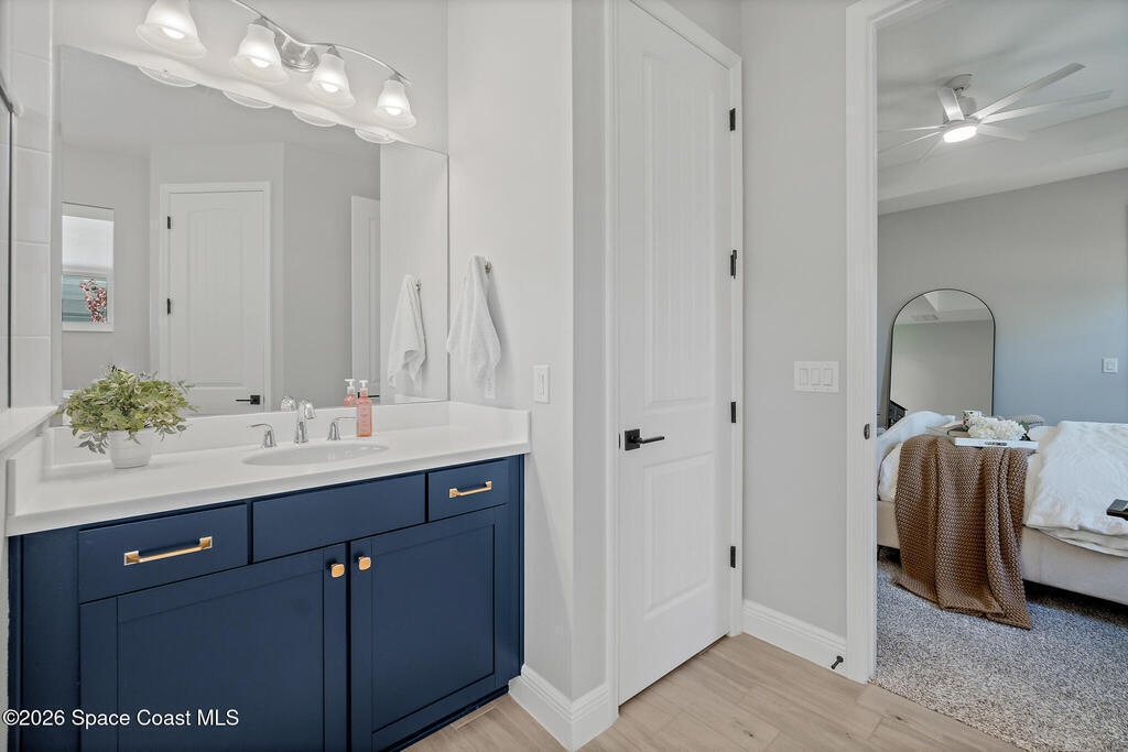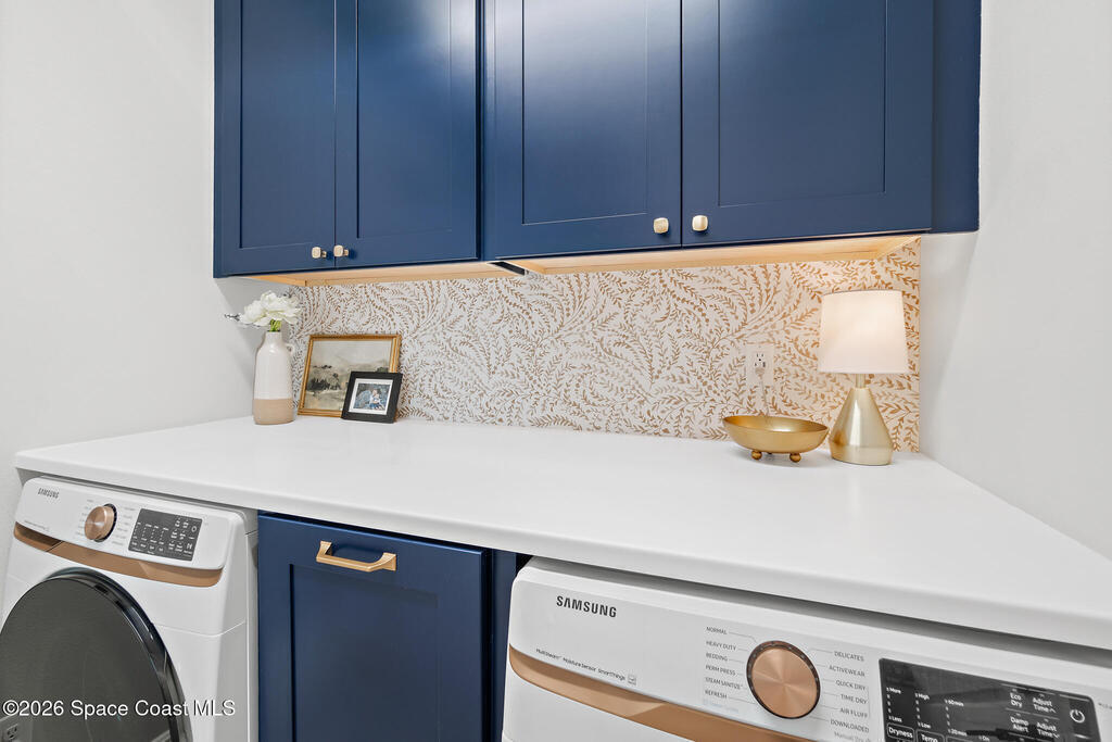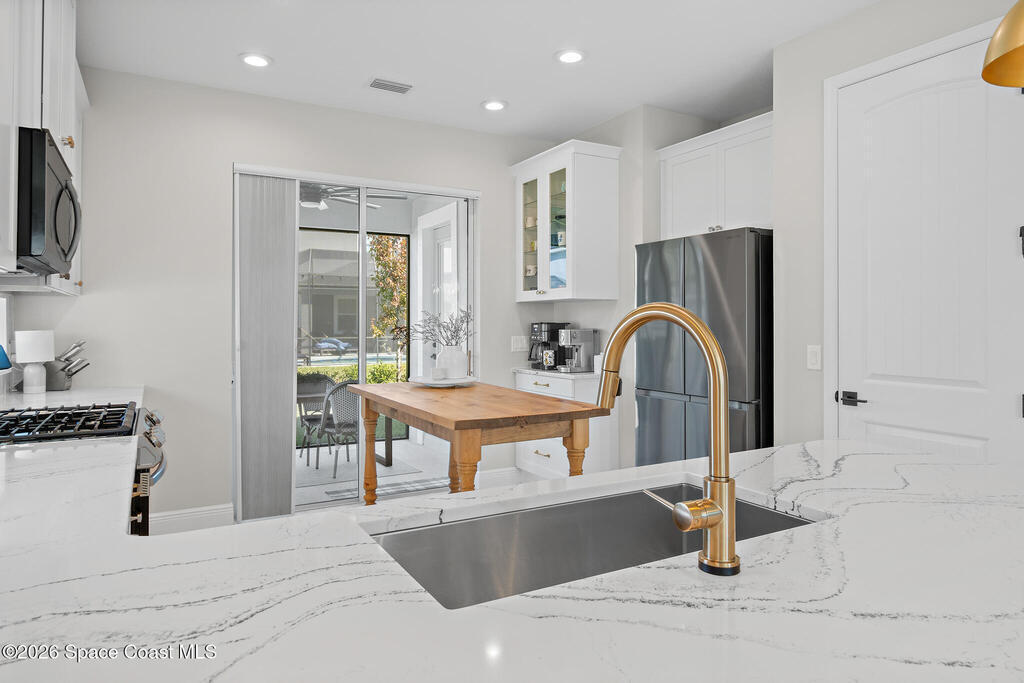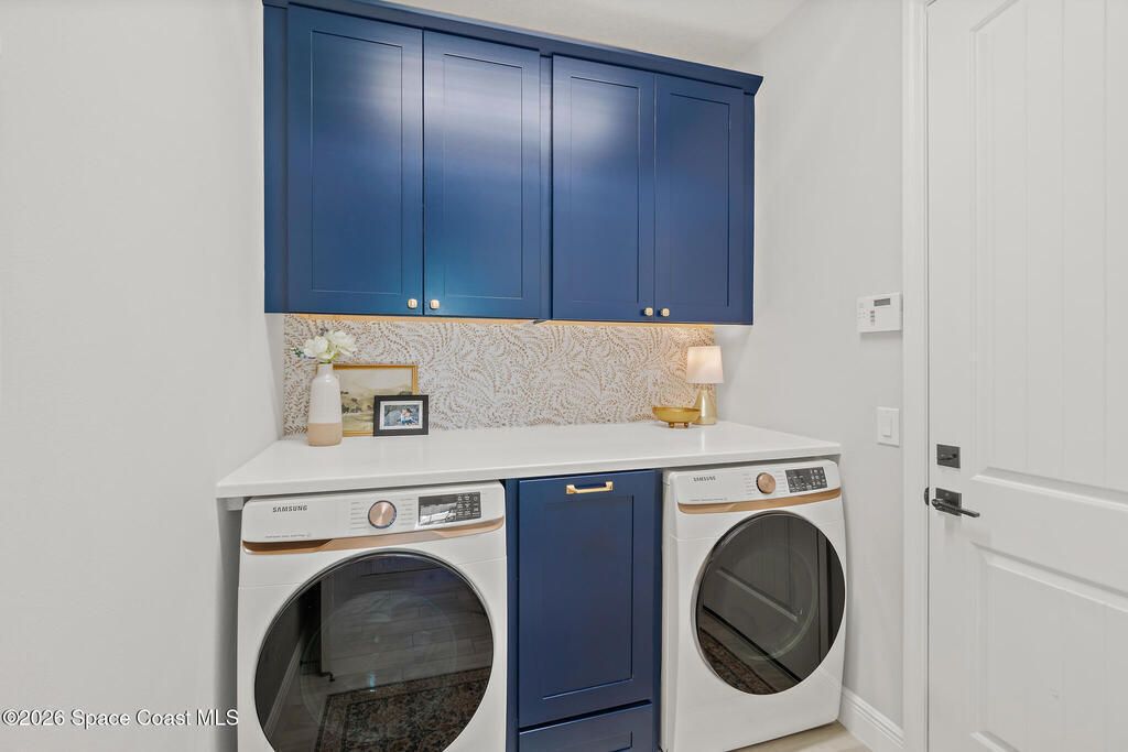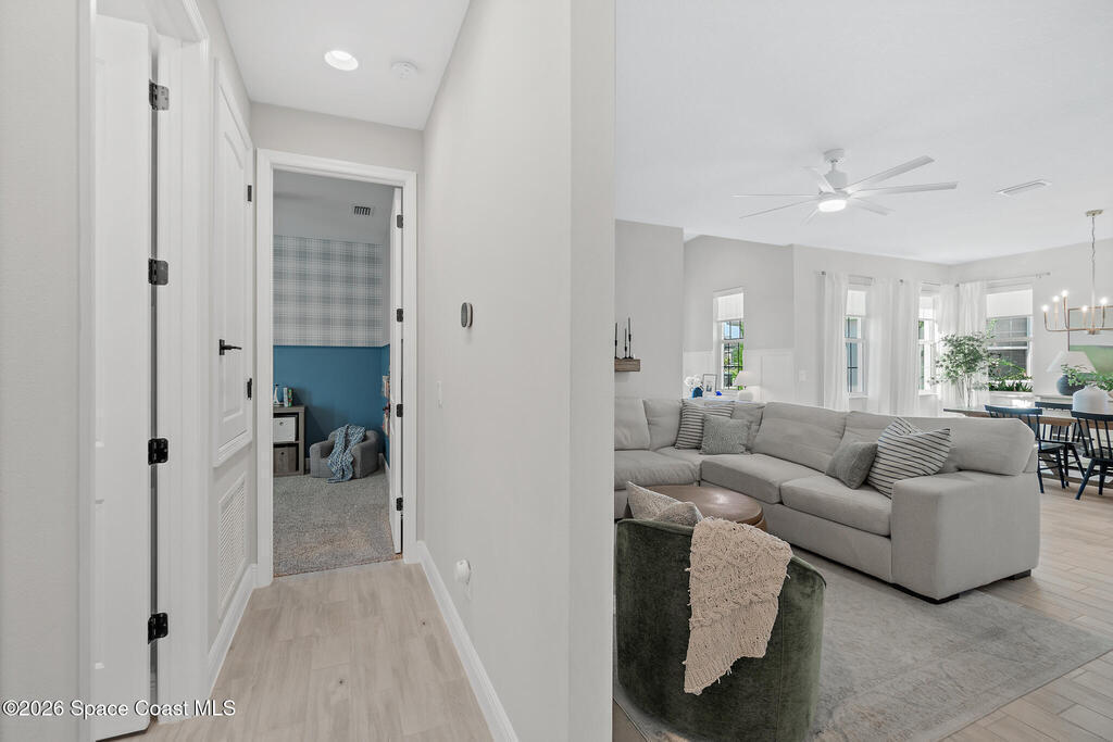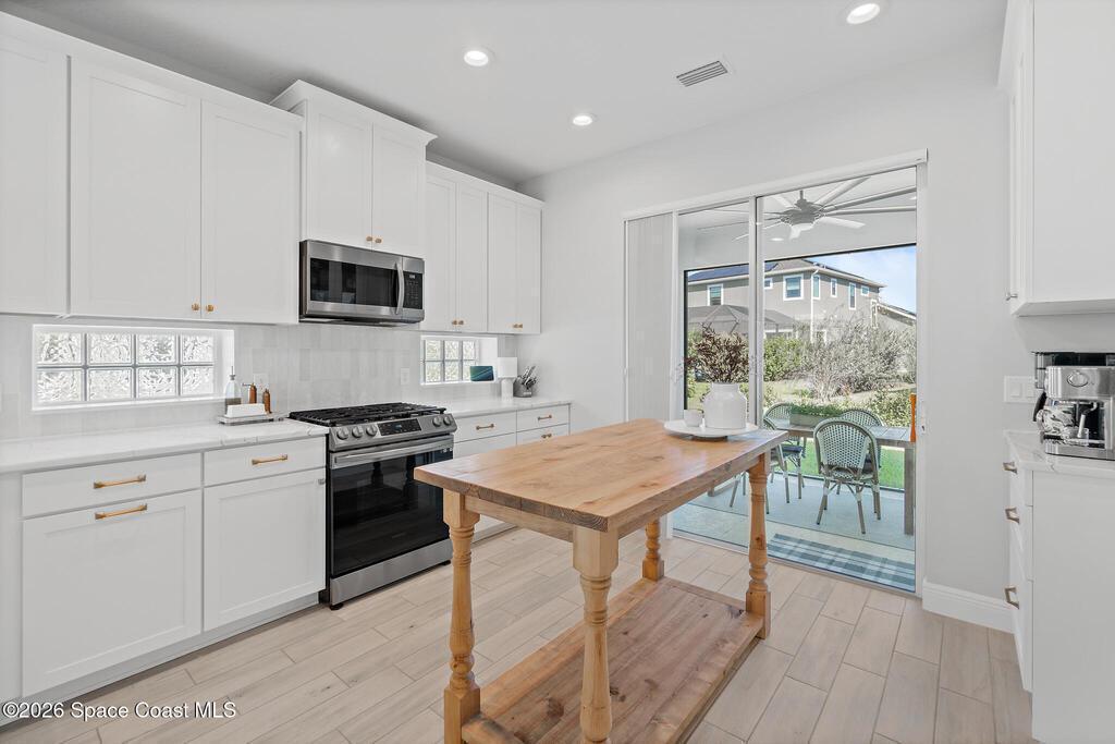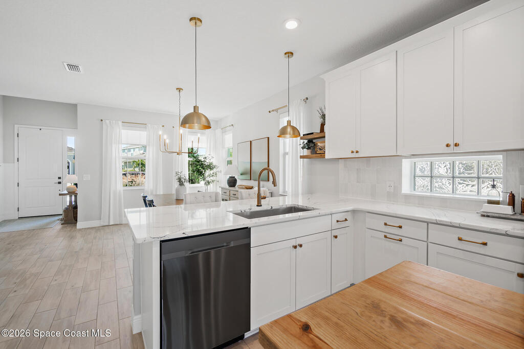 Welcome to 3024 Blazing Star, a beautifully upgraded 3-bedroom, 2-bath, 2-car garage single-family home located in the highly desirable planned community of Viera.This home is full of stunning upgrades. These sellers truly spared no expense. You'll immediately notice the wood-like custom tile flooring throughout the main areas, custom lighting, and a thoughtfully designed laundry room with upgraded finishes. The kitchen is a true showstopper, featuring stunning quartz countertops with subtle drops of gold, a large eat-in island, a charming coffee nook, and a layout perfect for both everyday living and entertaining.All bathrooms have been beautifully put together, continuing the home's cohesive, designer feel.Step outside to enjoy the covered, screened-in patio. Perfect for relaxing or entertaining while enjoying Florida living year-round. Residents also enjoy an incredible lifestyle with access to multiple community parks and the Addison Village Club, offering two pools,