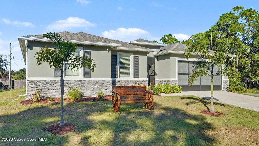 Like New! This stunning 5-bedroom, 2.5-bath home sits proudly on a desirable corner lot, featuring a striking stone-accented exterior that sets the tone for what's inside. Step into a newly screened entrance and an open floor plan with elegant tile flooring throughout-no carpet anywhere! The spacious living areas flow seamlessly, creating the perfect space for both relaxing and entertaining. The beautiful primary suite is a private retreat, complete with a spa-like ensuite designed for ultimate comfort. Enjoy the convenience of an in-unit laundry room and the benefit of modern upgrades throughout. Step outside to an airy screened lanai perfect for enjoying Florida living year-round. Even the garage is impressive, also screened and featuring higher-than-average ceilings ideal for extra storage, larger vehicles, or custom shelving. Plus, a brand-new water system adding efficiency and peace of mind. This home truly has it all- style, comfort, and convenience. Bring on your offers!
