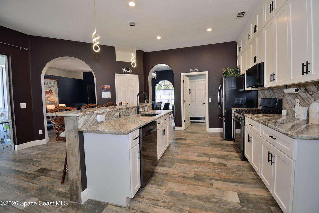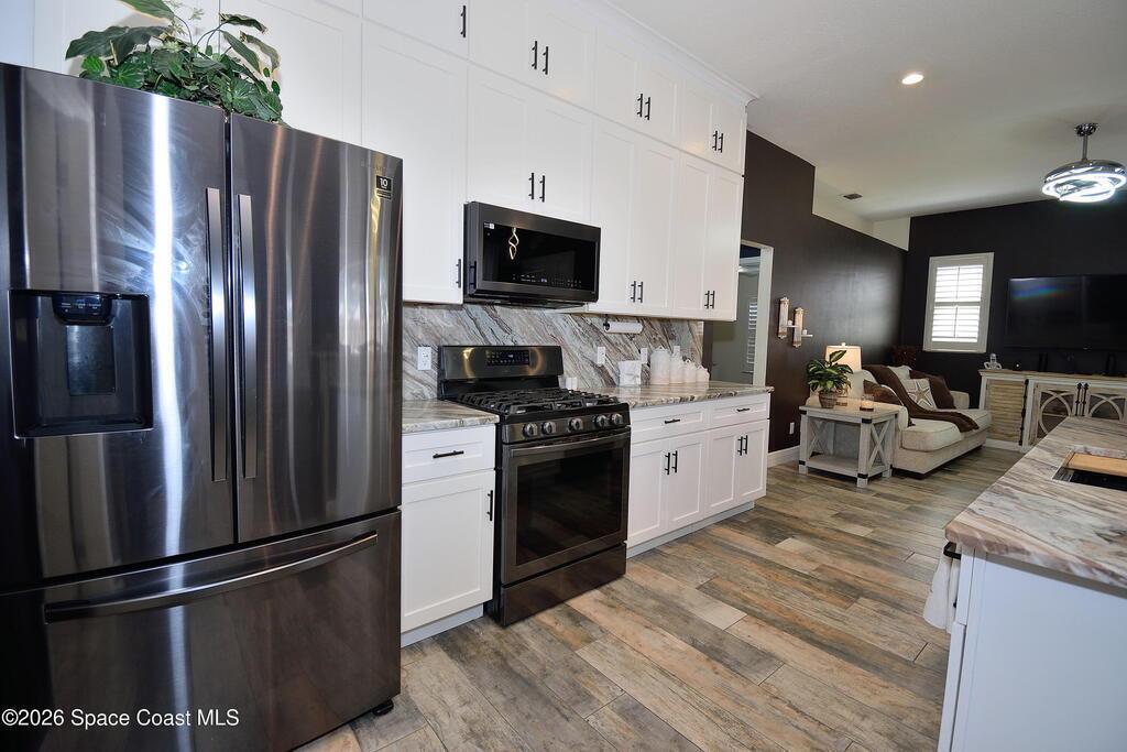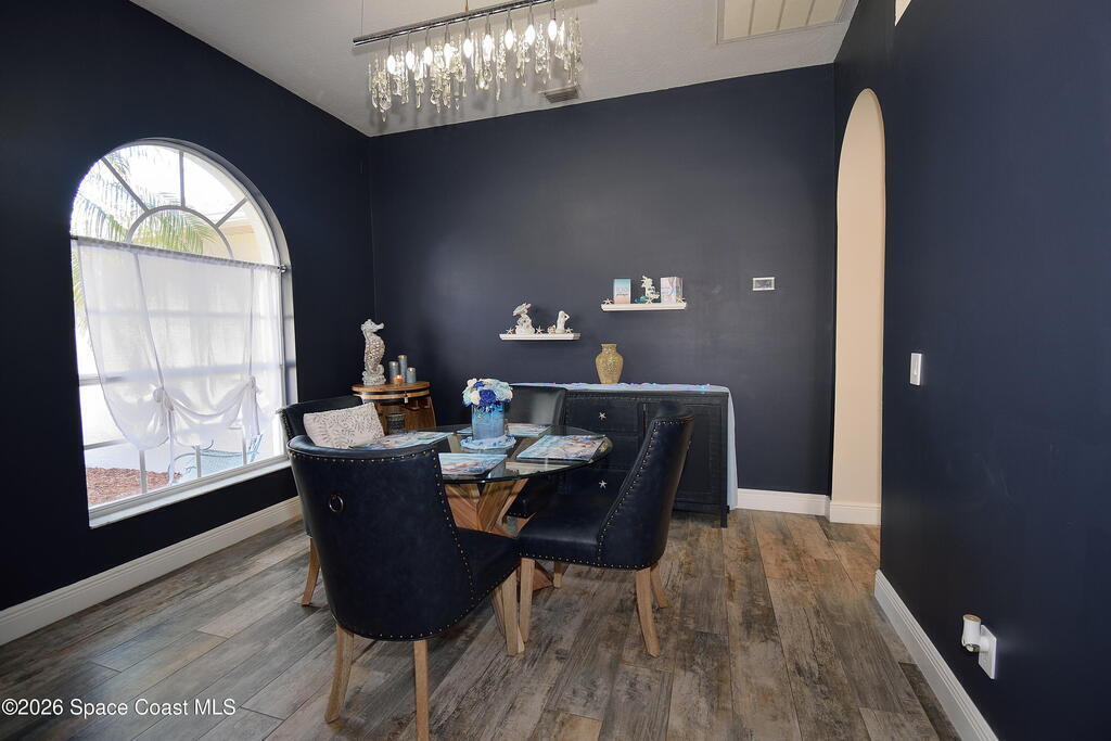 From the moment you enter, the stunning kitchen immediately sets the tone for this beautifully updated 3 bedroom, 2 bathroom home offering 1,779 square feet of thoughtfully designed living space. Featuring white shaker cabinetry, granite countertops, and a large center island with seating, this kitchen was designed to impress. A full-height backsplash, stainless steel appliances, and a gas stove combine style and function, while modern lighting and clean lines create a bright, open feel. The kitchen flows seamlessly into the family room and dining area, making it ideal for entertaining and everyday living.The home also offers a formal living room and formal dining room, providing flexibility for gatherings, workspace, or additional living areas. Both the primary and guest bathrooms have been tastefully updated with contemporary finishes. Tile flooring runs throughout the home for a cohesive and low-maintenance interior.Step outside to a screened patio overlooking the pool and fully